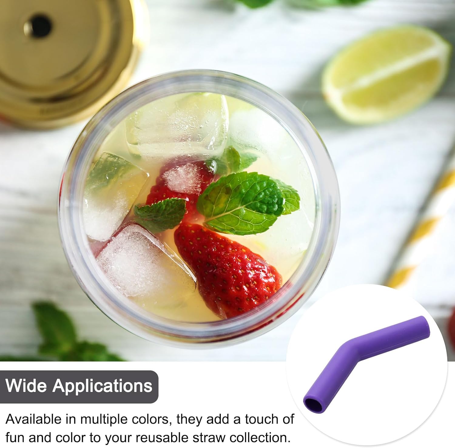 uxcell 6Pcs Silicone Straw Tips, Silicone Straw Elbows Tip, Soft Reusable Metal Straw Covers Fit for 10mm/0.39" OD Stainless Steel Straws, Purple