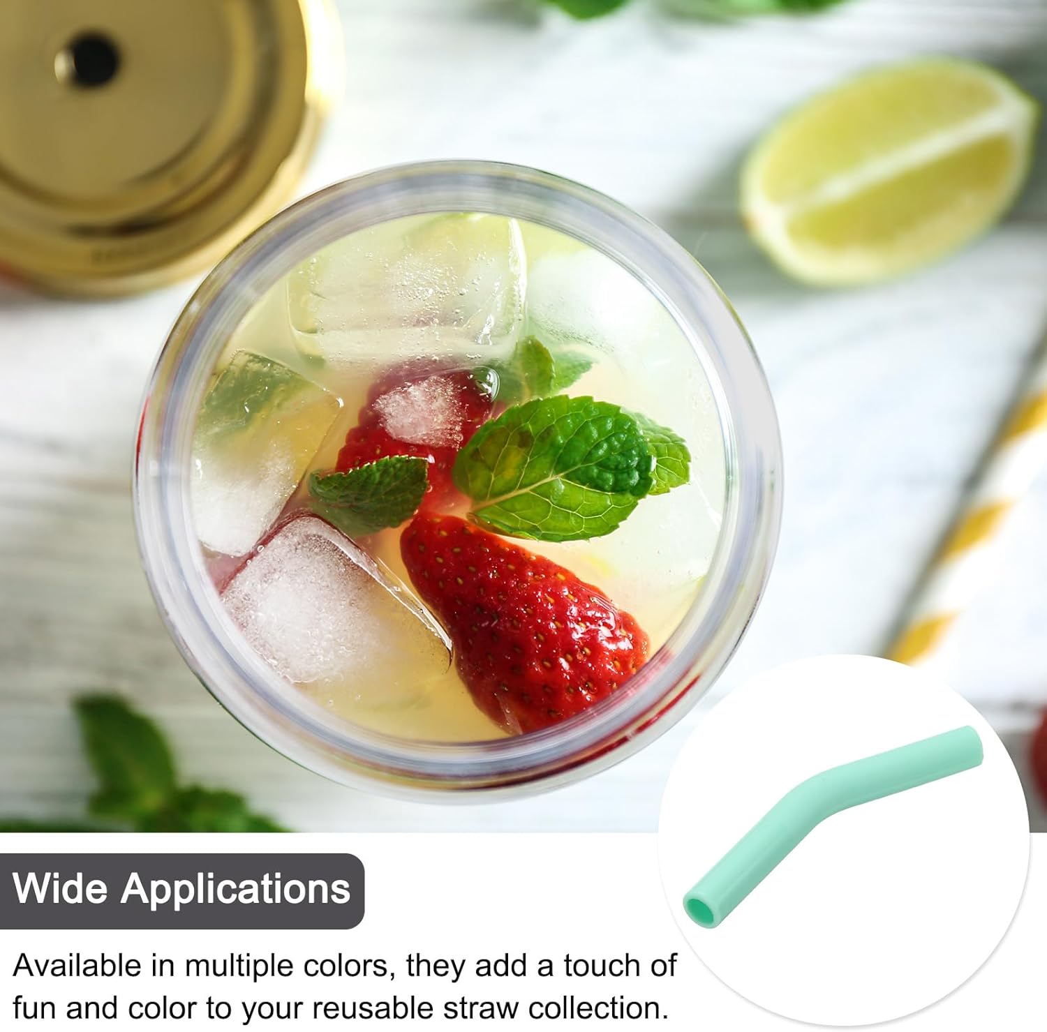 - [Product Dimension] Outside Diameter: 10mm/0.39"; Inside Diameter: 8mm/0.31"; Height: 87mm/3.43"; Color: Mint Green; Package Contents:4pcs x Reusable Silicone Straw Elbows Tips.