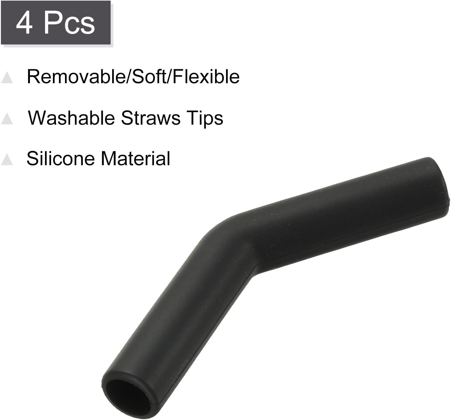 uxcell 4Pcs Silicone Straw Tips, Silicone Straw Elbows Tip, Soft Reusable Metal Straw Covers Fit for 10mm/0.39" OD Stainless Steel Straws, Black