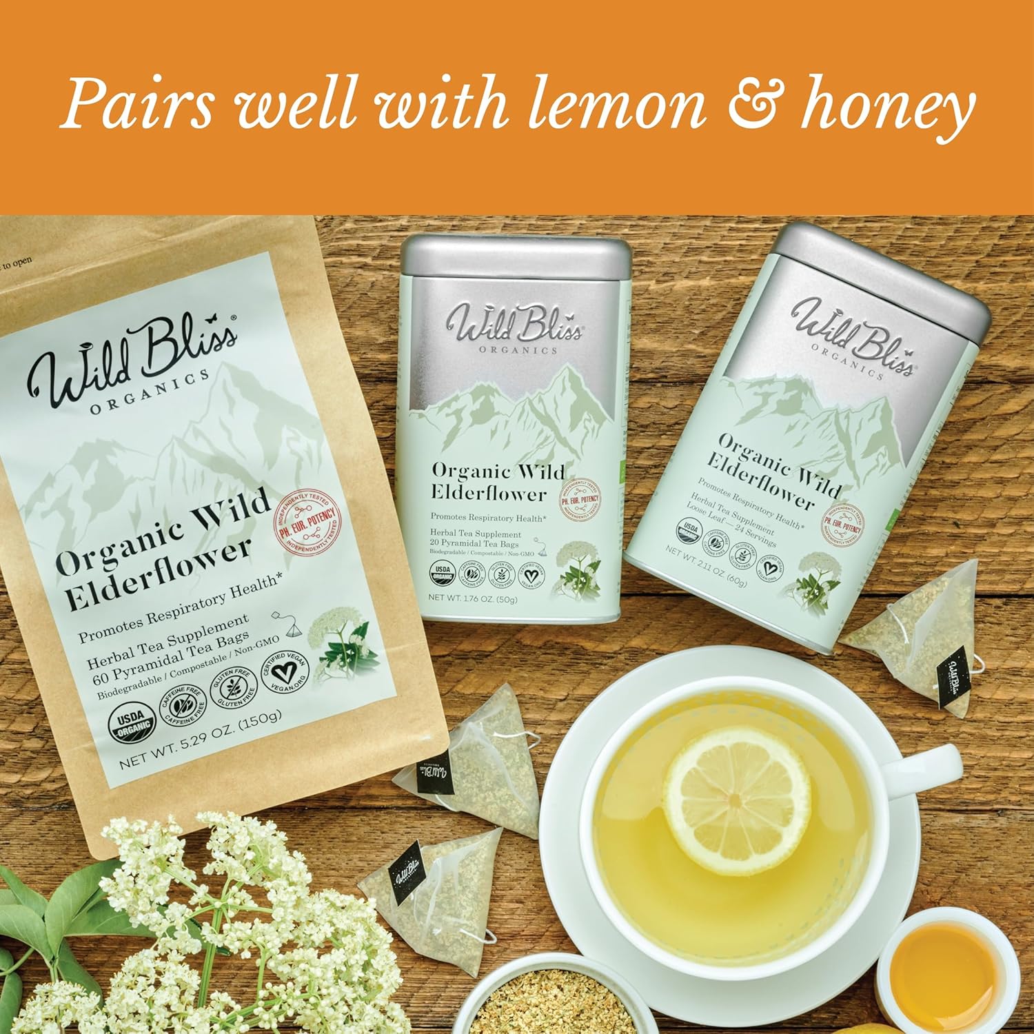Wild Bliss Organic Elderflower Tea – Immune and Respiratory Support - Caffeine Free Loose Leaf Elder Flowers - 5.29 Ounces - 60 Servings