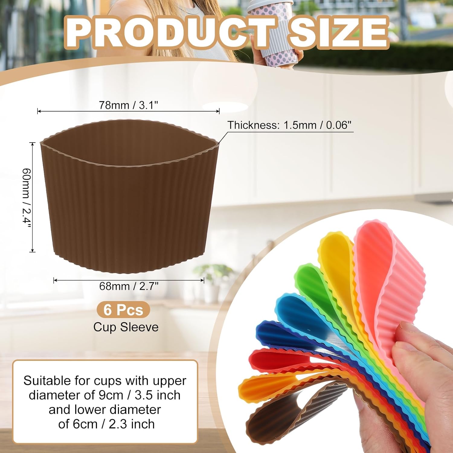 uxcell 6Pack Coffee Cup Sleeves, Reusable Silicone Heat Resistant Cups Protective Sleeve Nonslip Mug Protector Cover for Home Travel Mugs Glasses Water Bottle Boots, Coffee-colored