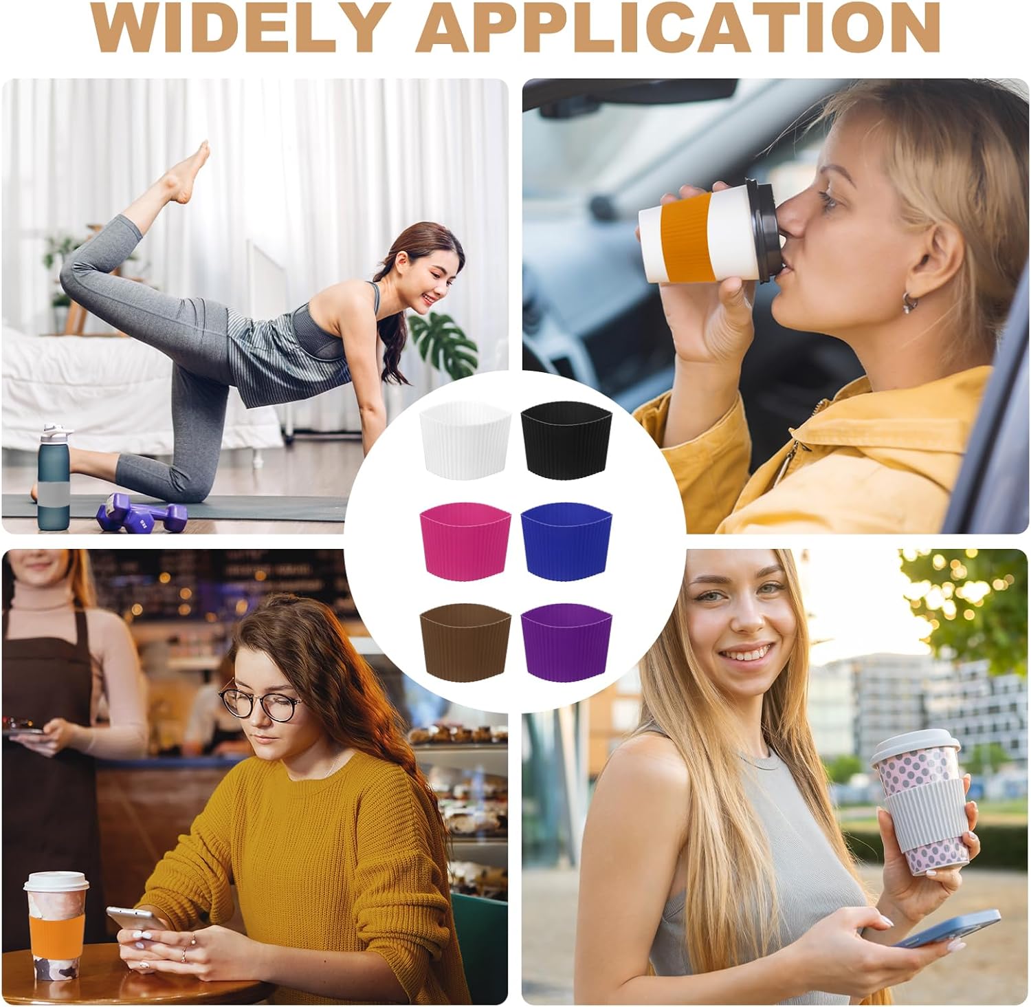 uxcell 6Pack Coffee Cup Sleeves, Reusable Silicone Heat Resistant Cup Protective Sleeve Nonslip Mug Protector Cover for Home Travel Coffee Mug Glasses Water Bottle Boots, Multicolor