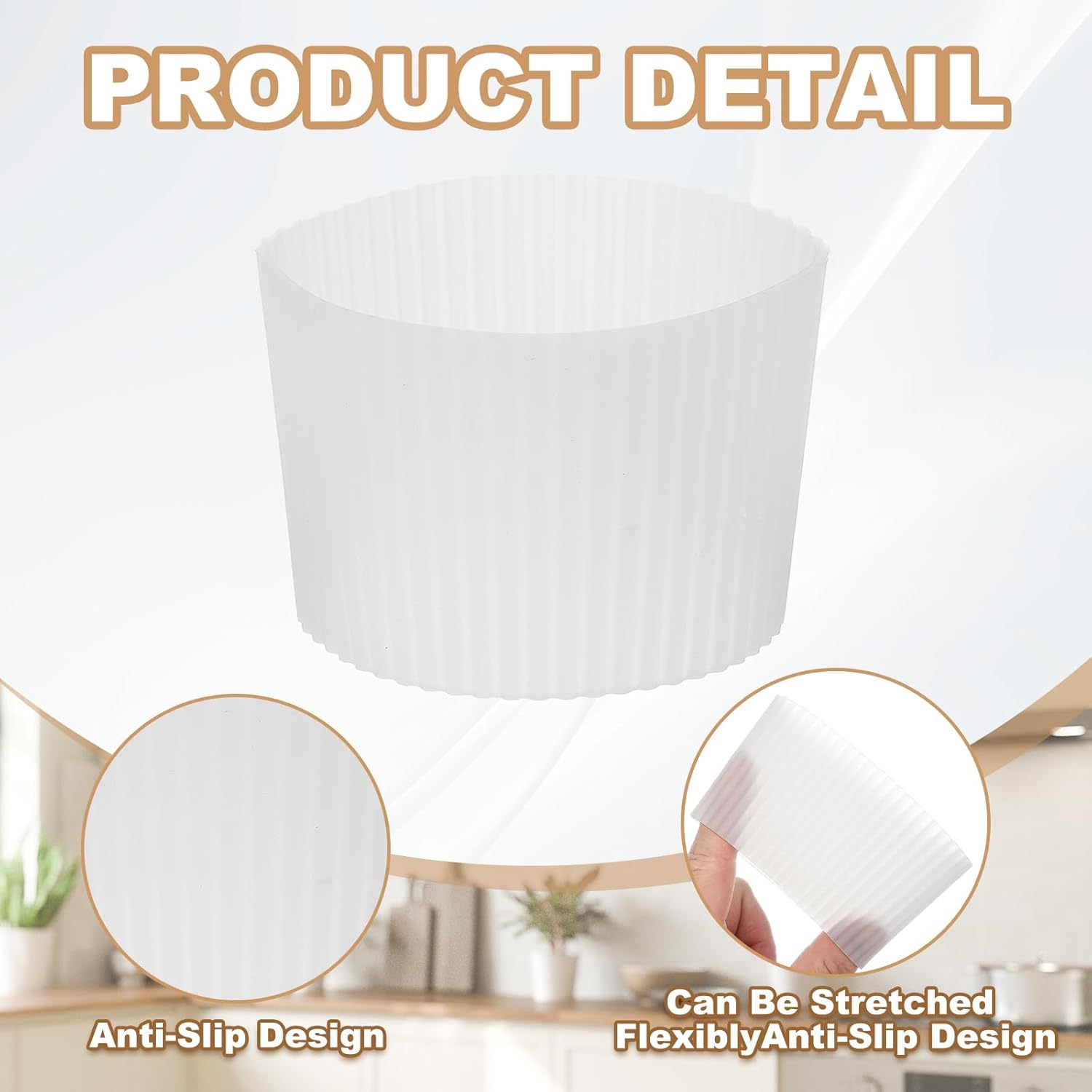 - SOFT & DURABLE MATERIAL: This silicone coffee cup cover is made of quality silicone material, which has excellent characteristics such as anti-slip, wear-resistant, water-resistant, and heat-resistant, ensuring that it will not be easily worn after long-term use; at the same time, it can be easily cleaned.