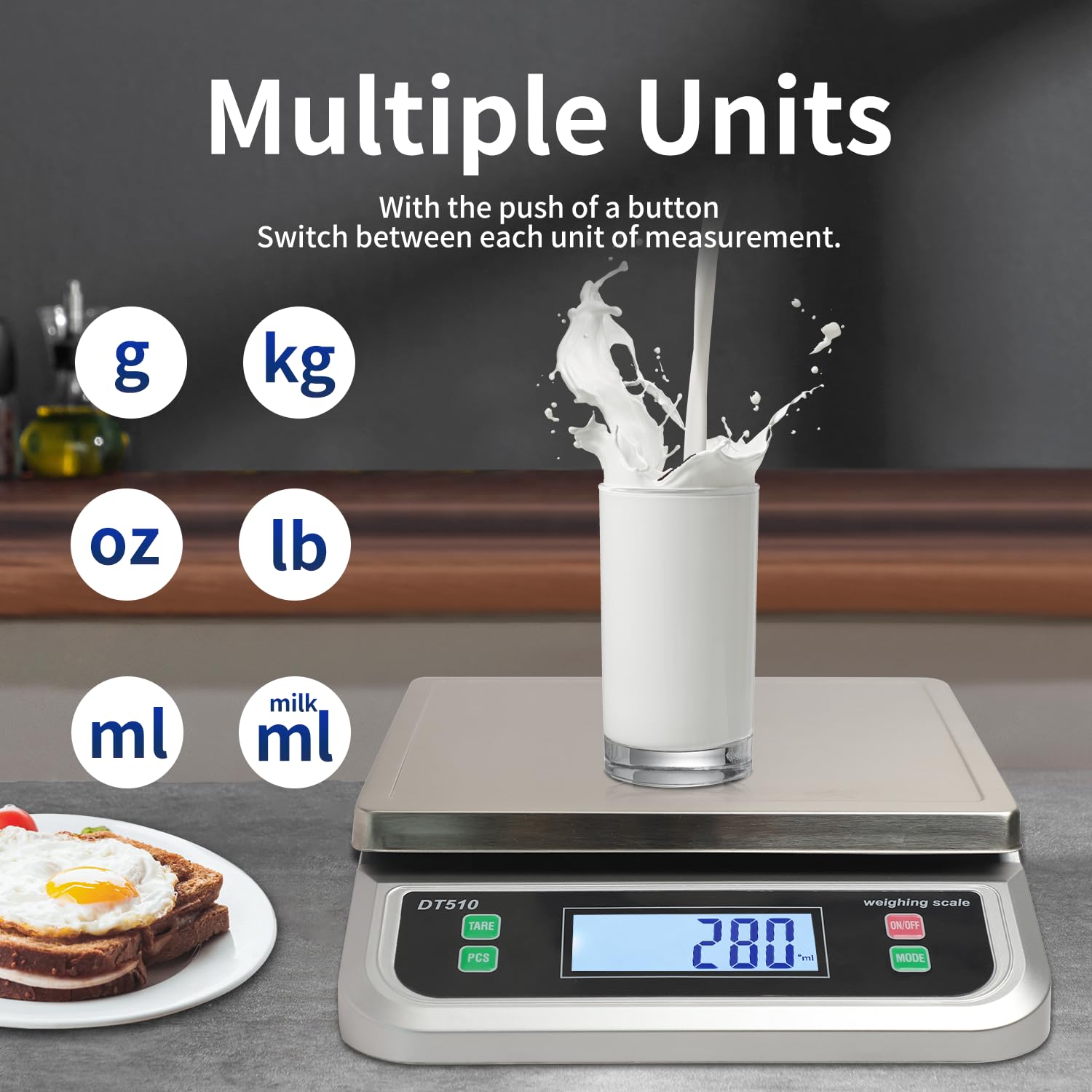 - LARGE FOOD SCALE: Easily convert between 6 units of g/oz/lb/kg/milk ml/water ml. Capacity range from 10g to 40kg (88lb), high precision sensors while the min weight is 3g-5g. ,Provides You with Instant and Accurate Results.