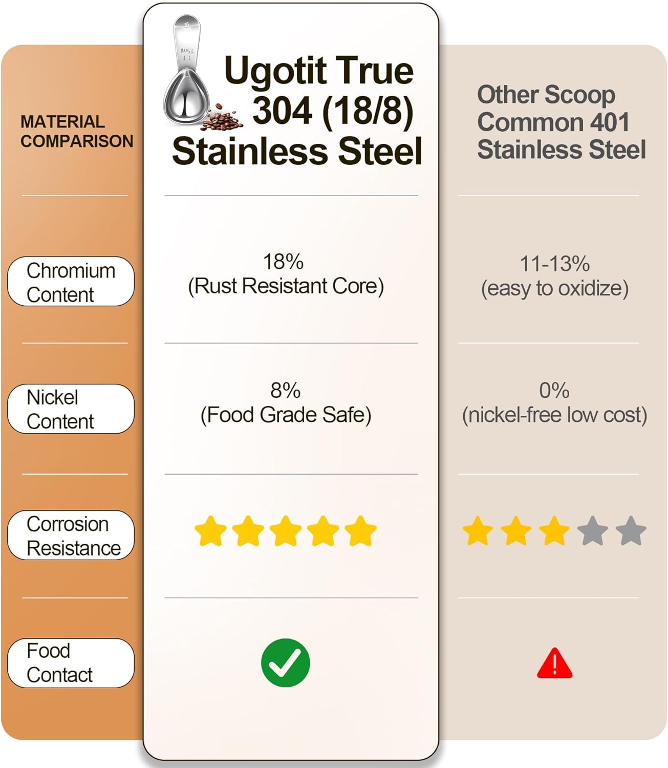 - 【Precise Measurement】- Each scoop accurately measures 1 tablespoon with clear measurement markings engraved on the handle