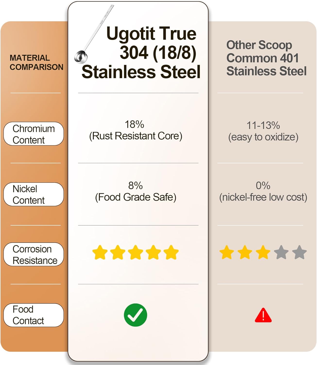 - 【Stainless Steel & Rust-Proof】-Crafted from food-safe 304 stainless steel, this coffee scoop resists rust, bending, and corrosion. Thick 2.3mm handle ensures durability.