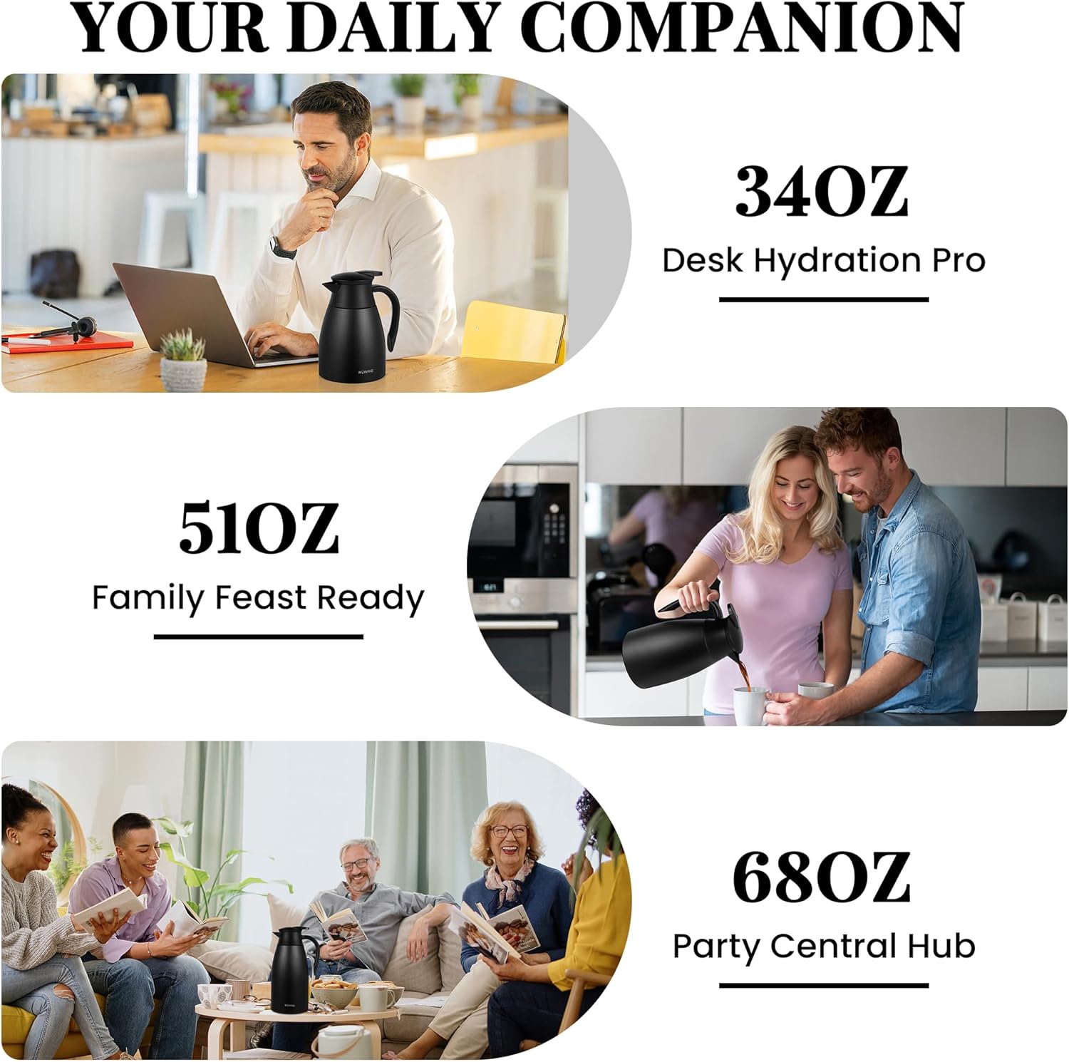 - Versatile & User-Friendly:Large coffee carafe (34 oz / 1 L) suits gatherings/offices. Pre-heat/pre-chill to keep coffee hot/cold longer. Sleek iced coffee carafe & hot tea thermos in one