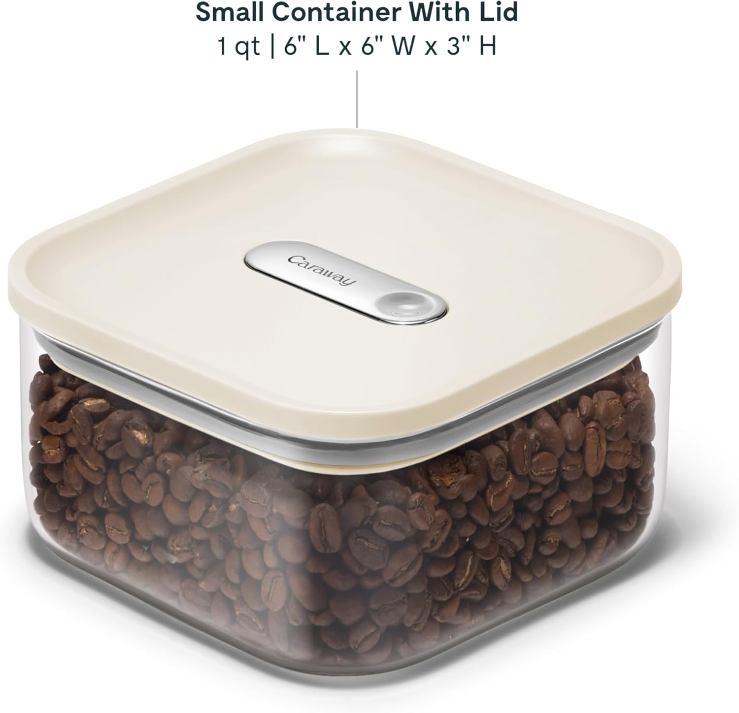 Caraway 1qt Glass Airtight Food Storage Container with Lid – Non-Toxic, BPA-Free Kitchen Storage Container – Stackable, Space-Saving Airtight Container for Dry Goods and More - Cream