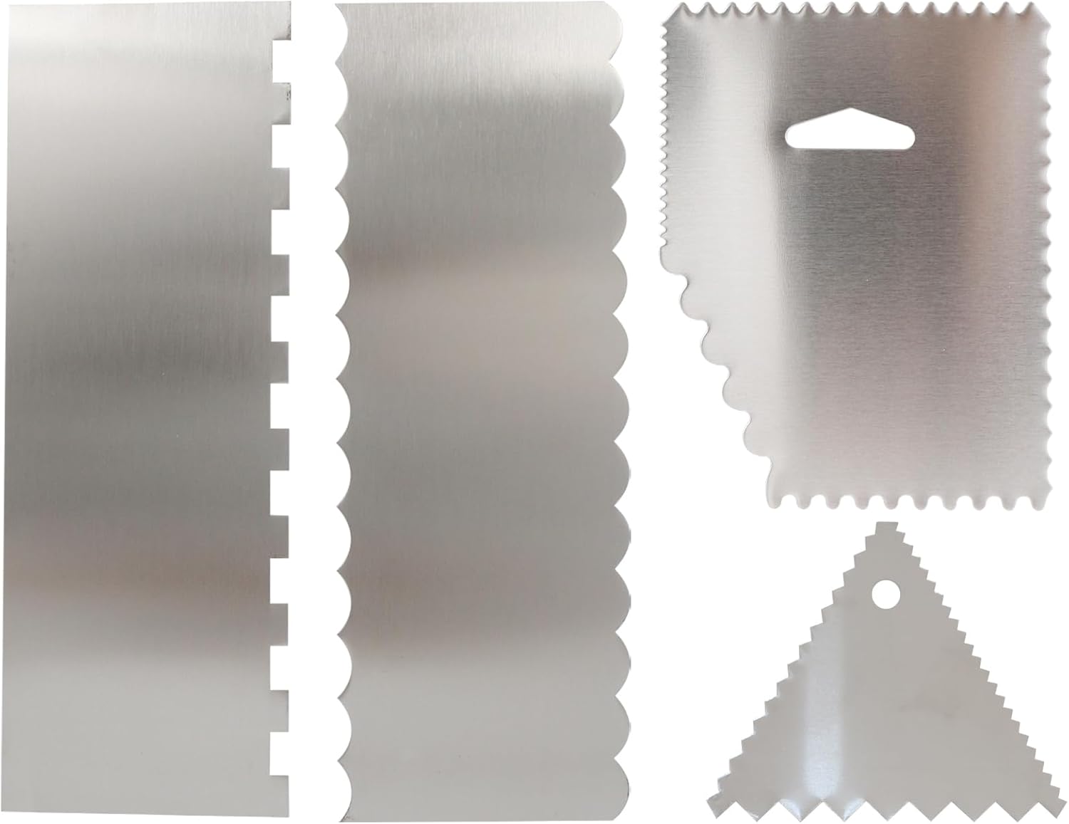 - Set Contents: The set contains 4 metal cake scraper, which is sufficient to easily meet various cooking and baking needs in your daily life. Whether it is evenly spreading frosting, smoothing buttercream, or using it as a cake grinder, cake divider or pastry cutter, cake smoother for icing can do it.