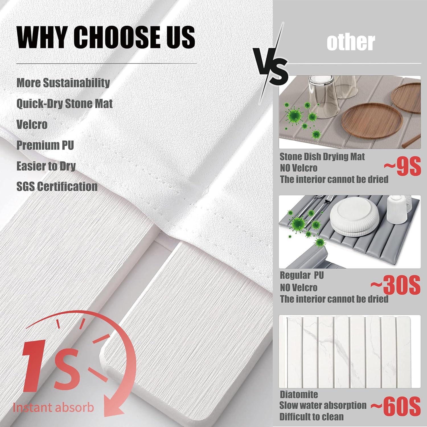 Stone Drying Mat for Kitchen Counter-Super Absorbent PU Dish Drying Mat, Quick Dry Stone Mat Kitchen for Dishes, Bottles & Cups, Large Foldable Stone Dish Drying Mat, Non-Slip Kitchen Mat