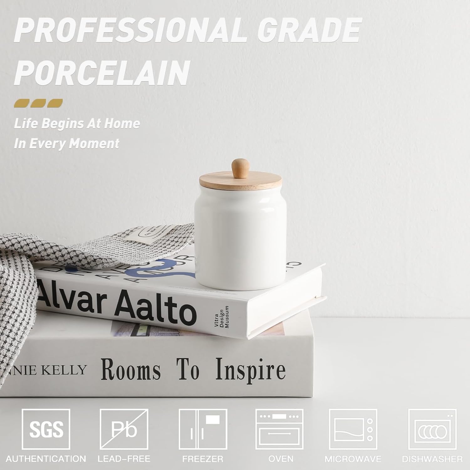 Sweejar Ceramic Kitchen Canisters, Porcelain Food Storage Jar with Airtight Seal Wooden Lid, Home Container Serving for Coffee Beans, Tea-leave, Sugar, Salt and More (White, XS(6.8 FLOZ))