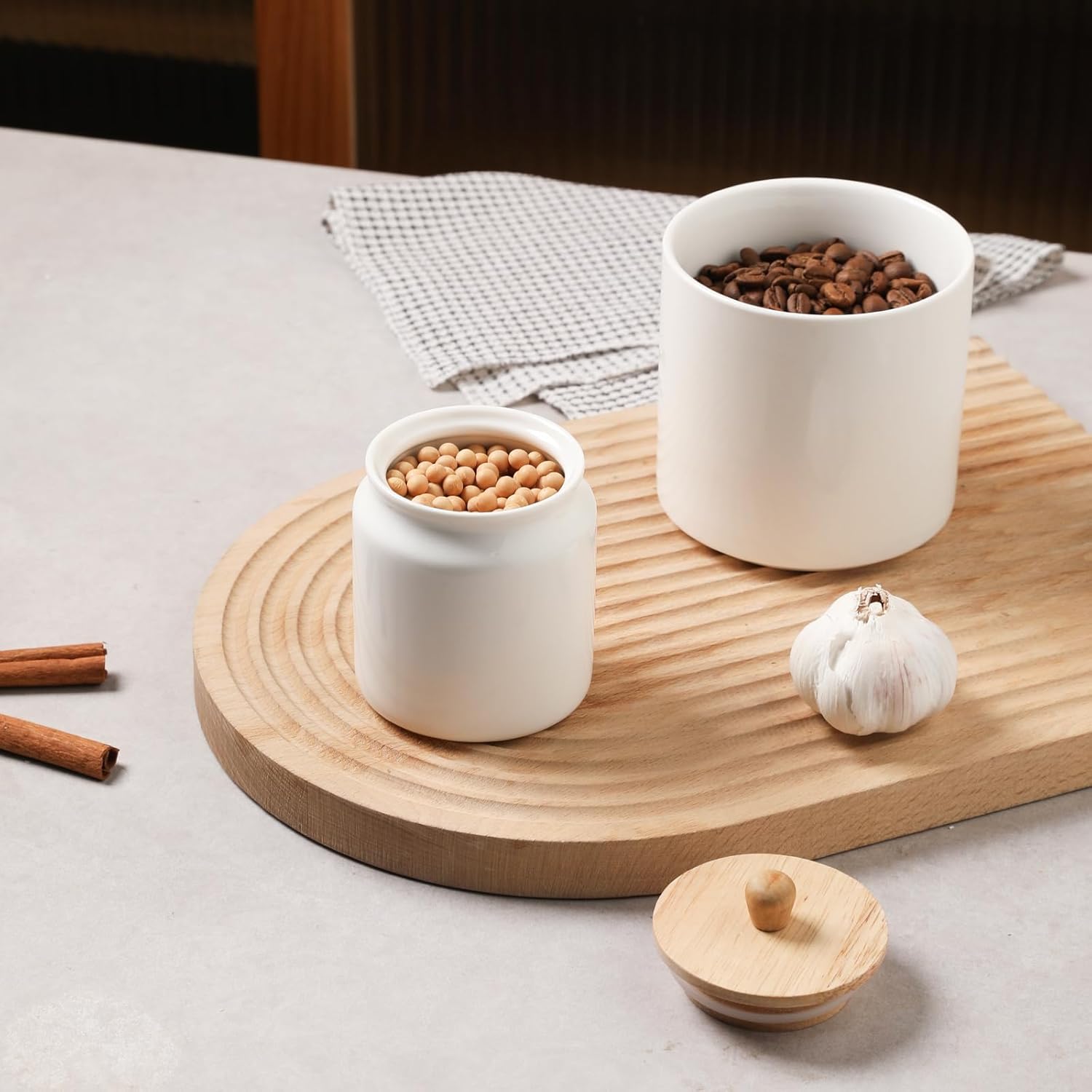 - Beautiful and Practical - You will fall in love with the unique ceramic material, the environmentally friendly and healthy wooden lid, and the rubber ring can form an airtight seal to keep the contents fresh and dry.