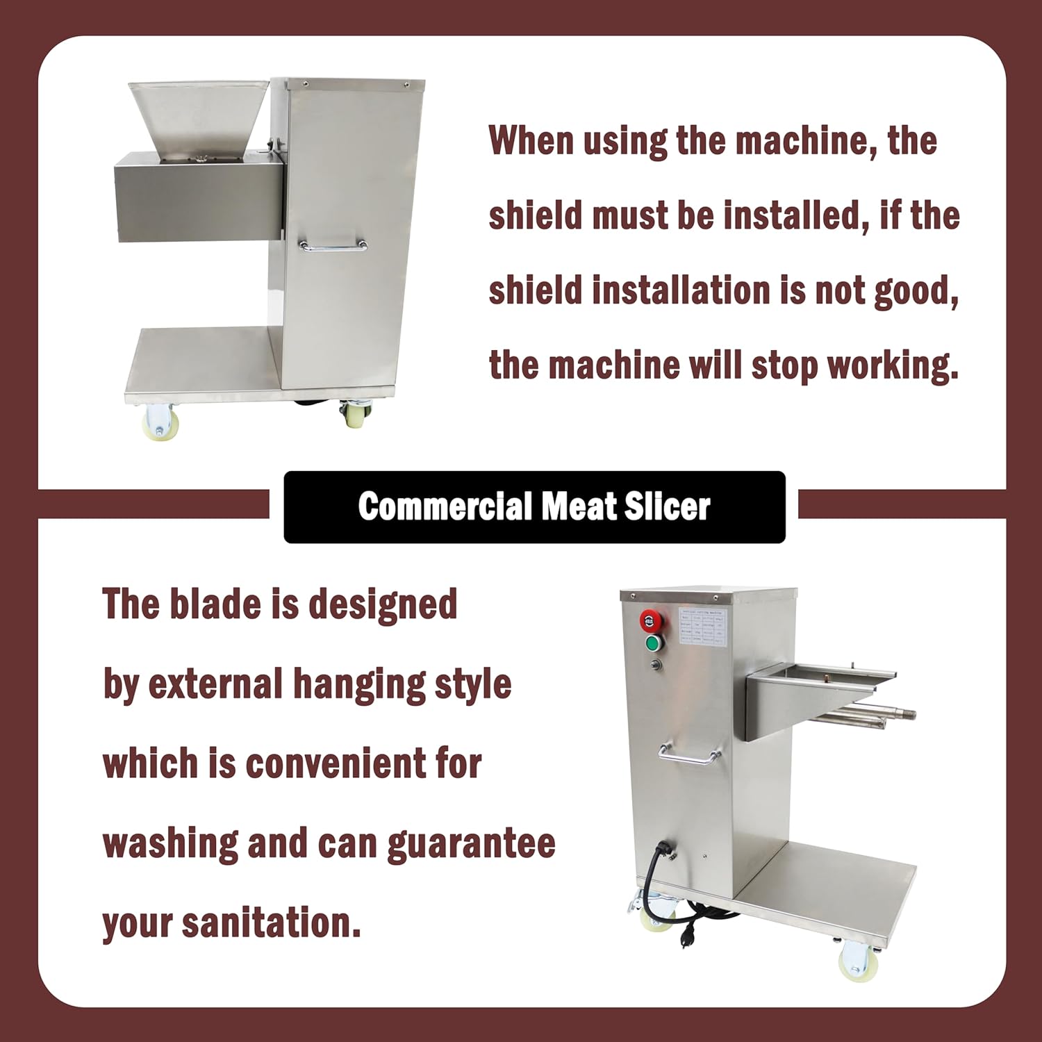 - [Widely used] This stainless steel commercial meat slicer is suitable for small catering and meat processing enterprises, kindergartens, and small canteens. It can be applied to all kinds of pork, beef, mutton and all kinds of pickles.