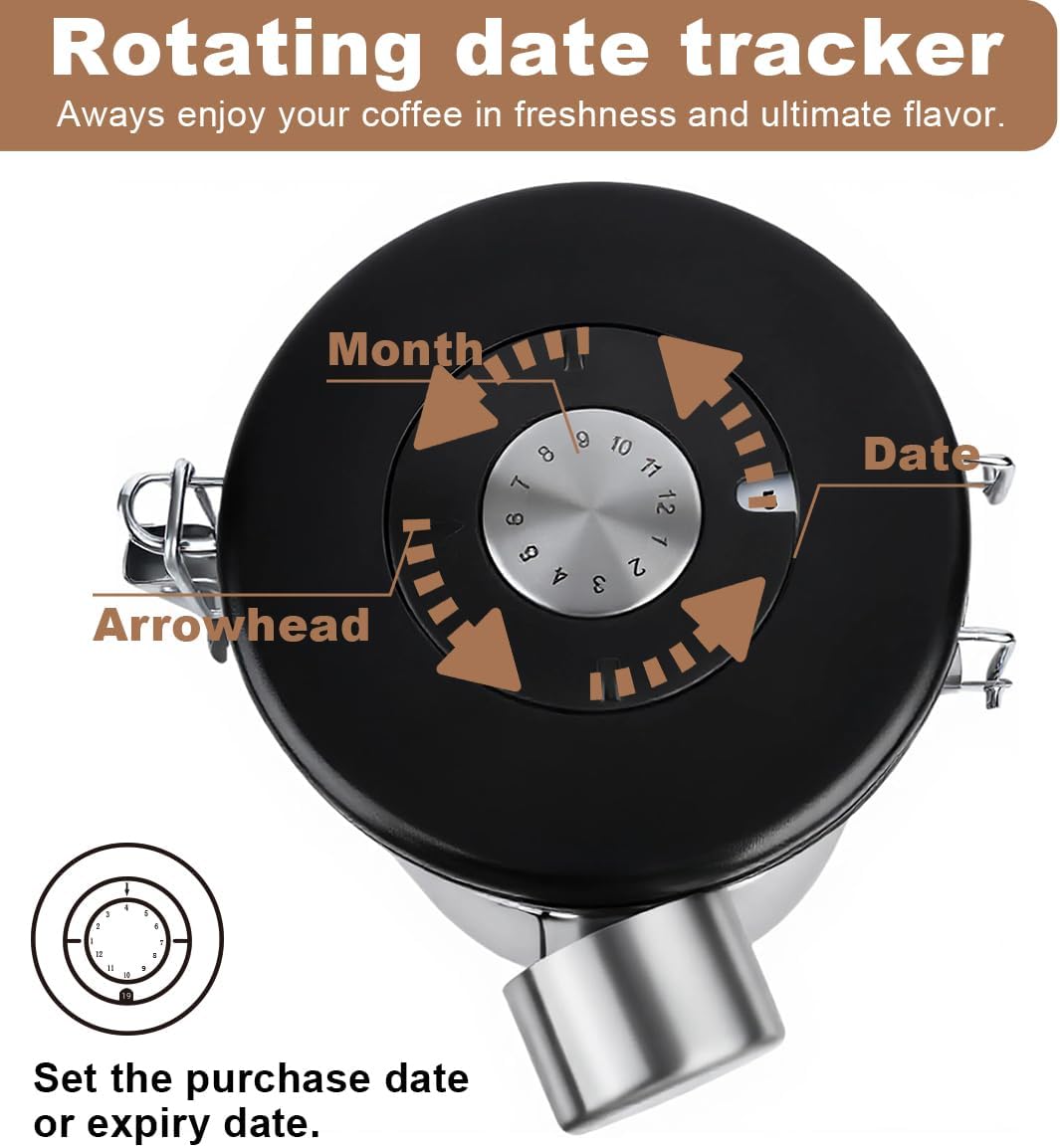 - HIGH QUALITY MATERIALS:This coffee storage container is made of 304 edible grade stainless steel, so you can use it with confidence. Don't worry about rusting or other issues with the coffee canister. It can effectively prevent corrosion and rust, keeping your sealed jar in its original shape