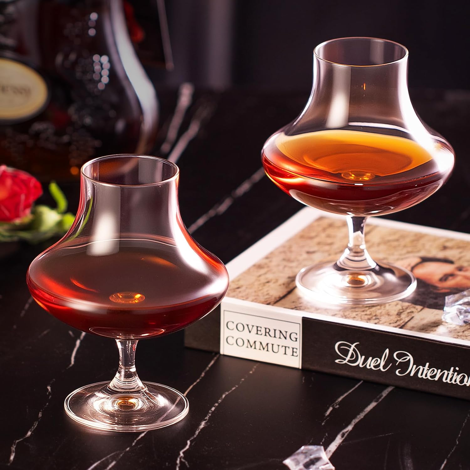- 【Innovative Design】The wide-bodied, narrow-rim design effectively preserves the effervescence of bubbles and locks in the aroma. This brandy glasses stem minimizes hand contact with the bowl, preventing body heat from affecting the drink's temperature. An ergonomically designed elongated stem ensures a comfortable grip, while the weighted base prevents tipping, enhancing the tasting experience for champagne, wine, and cocktails.