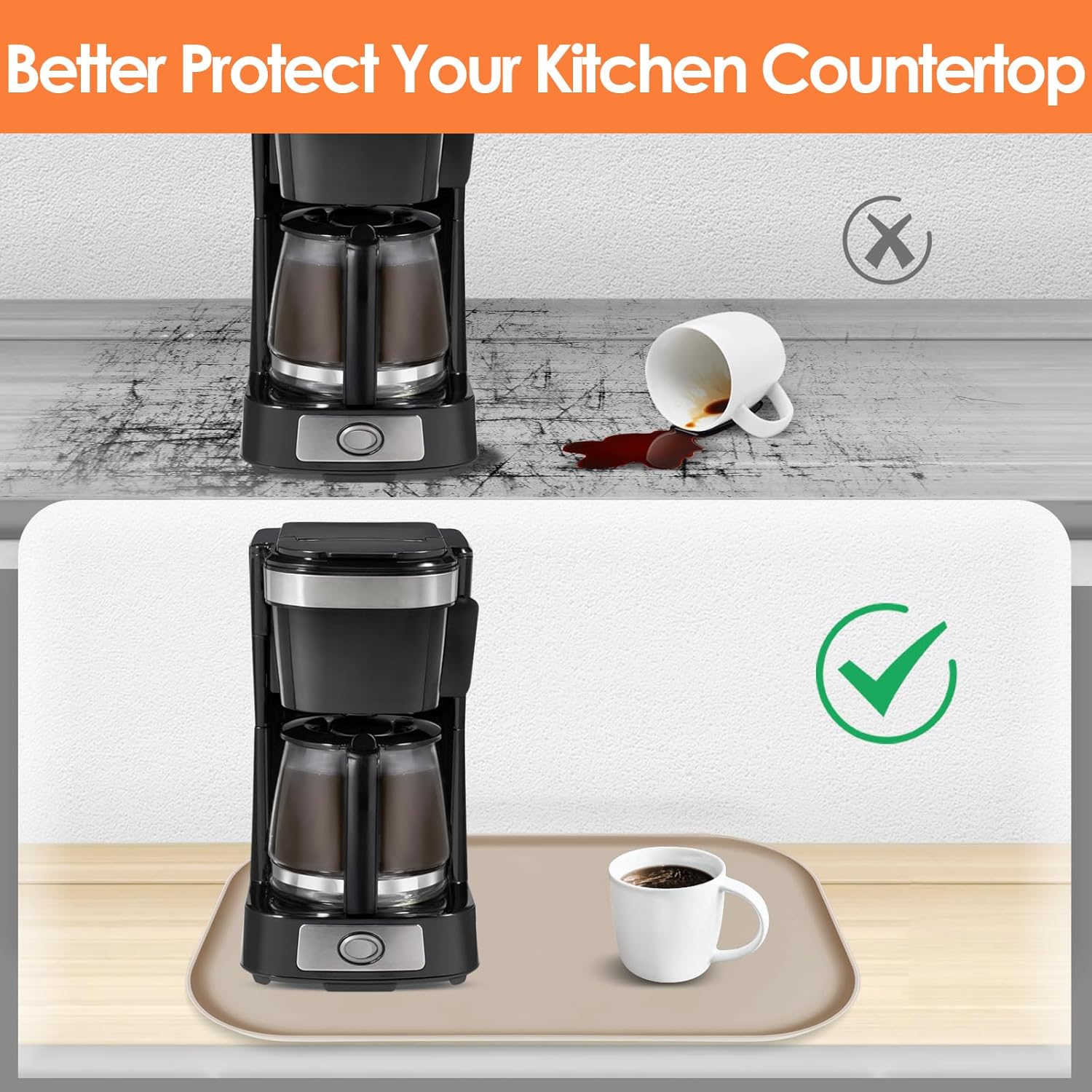 - 100% Water Does Not Flow Out: The coffee maker mat is built with 2/5" raised edge, like a tray and it can contain any liquid spills from the coffee maker. The premium material not only protect your countertop from scratches, especially protect the wood countertop, but also keep your your countertop tidy, clean.