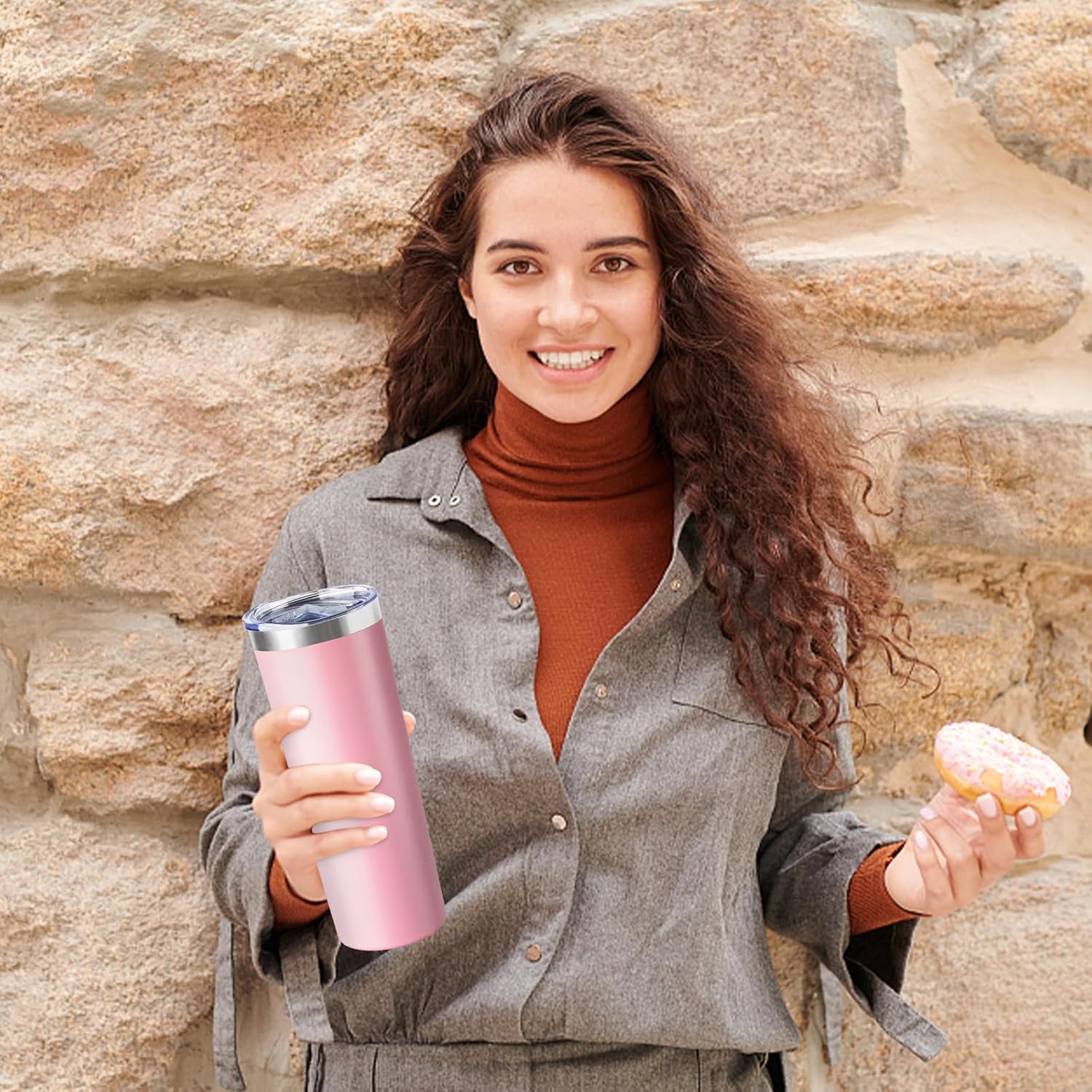 20 oz Skinny Tumbler with Lid and Straw,Stainless Steel Vacuum Insulated Tumbler Cup Double Wall Leak-proof Coffee Mug,Travel Thermal Water Tumbler for Home,Office,Outdoor (Pink,1)
