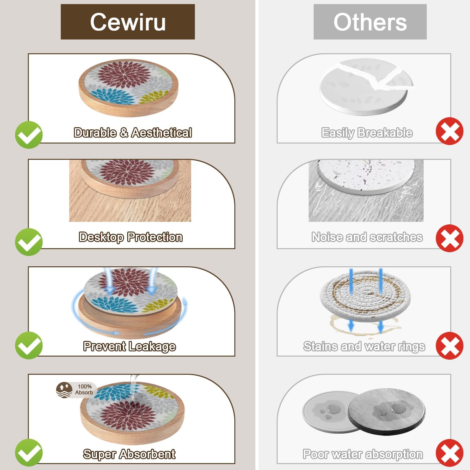 - Easy Clean & Reusable: Remove the felt insert and rinse with water, then lay flat or hang to dry, wooden base simply wipes clean with a damp cloth or sponge; cute coasters are perfect for wedding pareties, Mother's Day, Thanksgiving, Easter, Christmas, New Year, tea parties, holidays and other special events, great gift idea for friends, family or colleague.