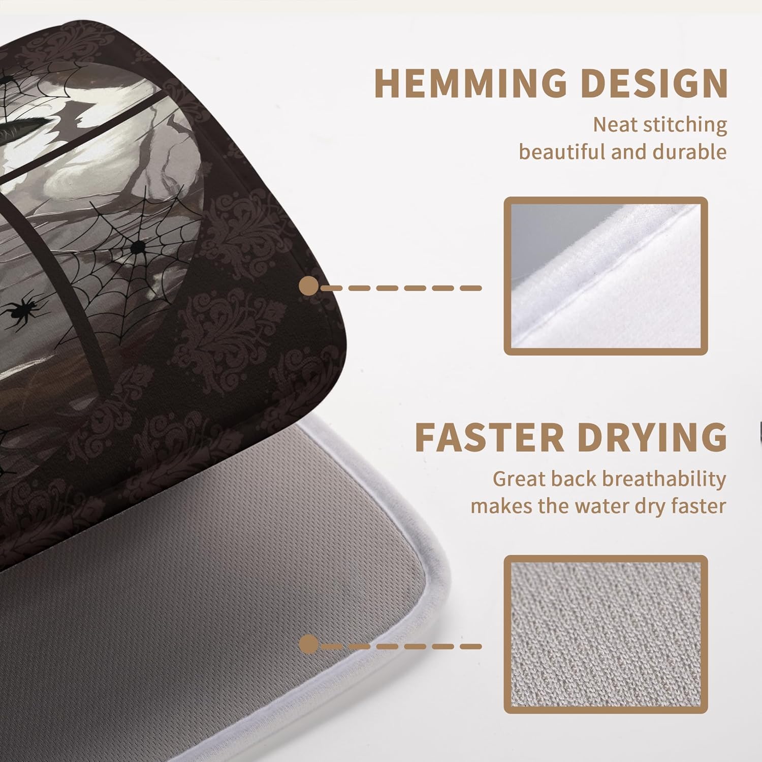 - [Material]: The surface of this Fall Halloween Pumpkins kitchen drying mat is made of absorbent microfiber and the middle is made of composite sponge. Maple Leaf Black Bat Large microfiber dish drying mat can be easily rolled up and folded for storage or hanging.