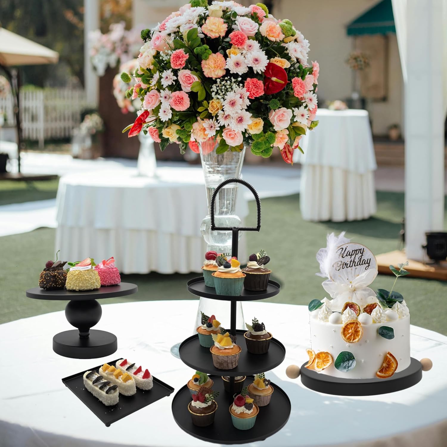 Set of 7 Black Cake Stands Metal Dessert Display Holder Round 3 Tier Cupcake Stand Serving Tray Platter Cake Pedestal Stand for Party Weddings Birthday Baby Showers Anniversary