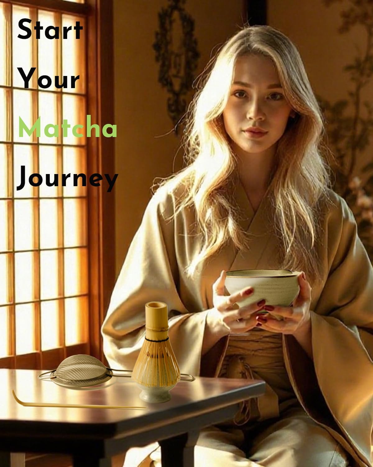 Matcha Whisk Set,Matcha Set,Matcha Kit,Matcha Bowl with Spout,Scoop,Sifter,Bamboo Whisk,Chasen Holder,Unique Gifts for Women Grifend,Gifts for Christmas, Birthday,Halloween