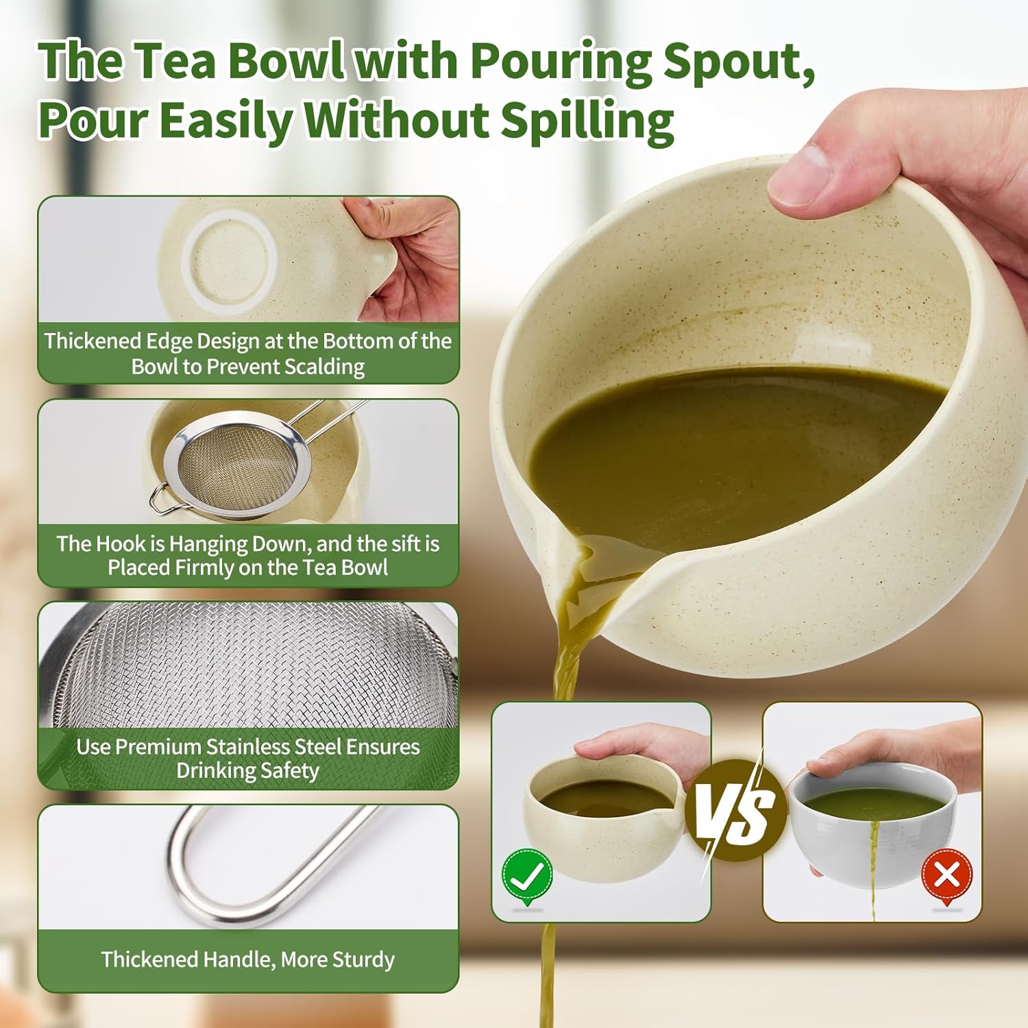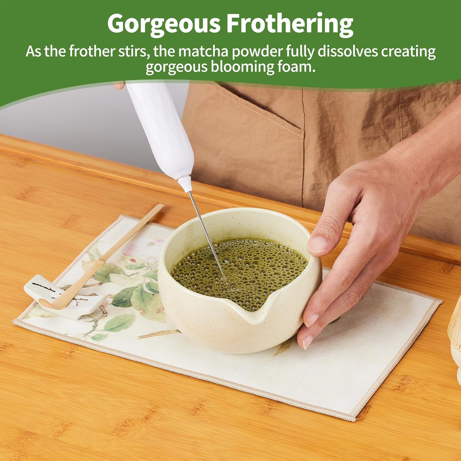 Matcha Whisk Set,9 Pcs Japanese Matcha Set, Matcha Kit with Sifter, Matcha Tea Cloth, Matcha Powder Canister, Electric Rechargeable Frother(Mottled Beige)