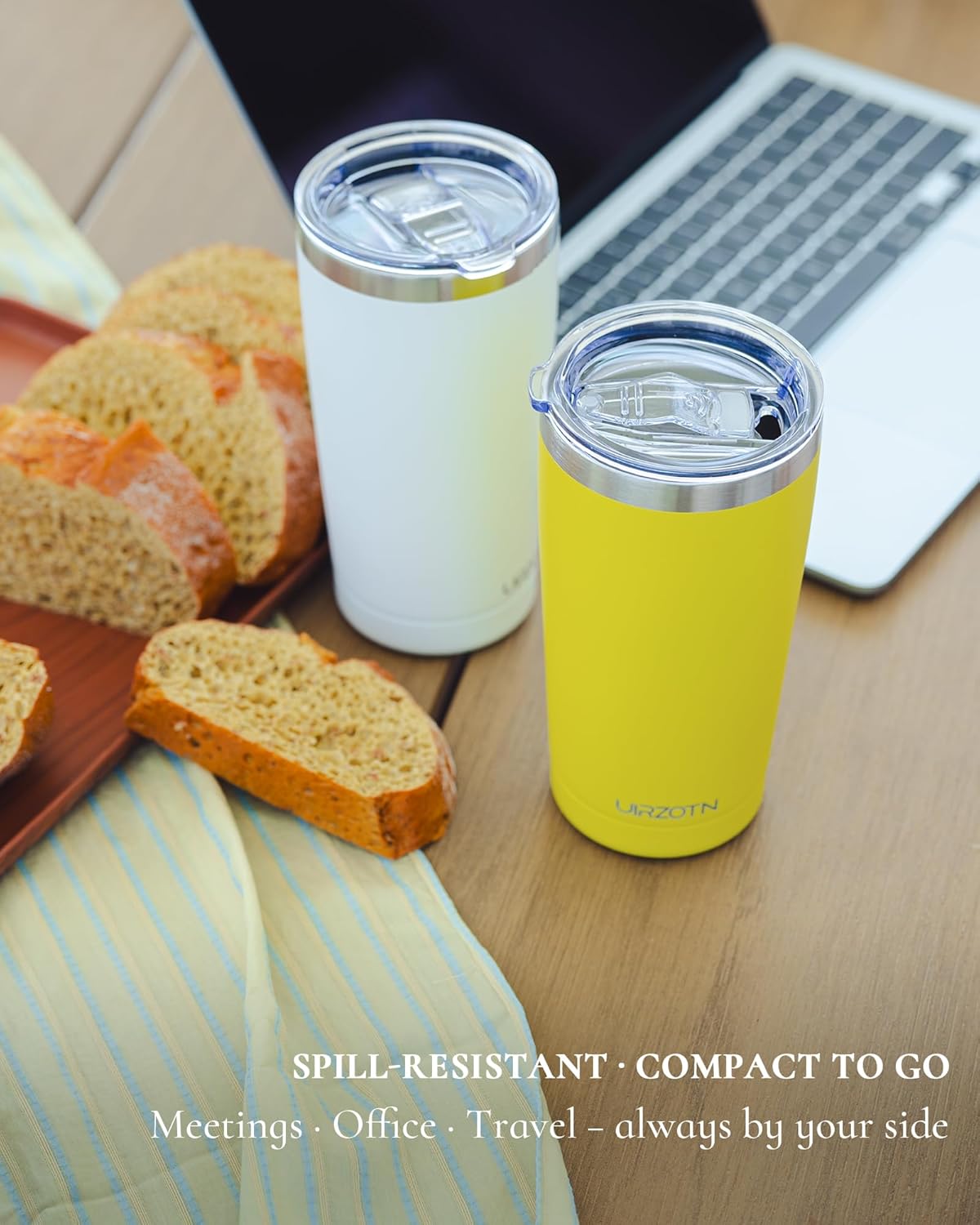 Travel Coffee Tumbler 20oz, Leakproof Travel Coffee Mug with Lid and Straw, Stainless Steel Double Wall Vacuum Insulated Tumbler for Hot/Iced Drinks (Textured Matte, White)