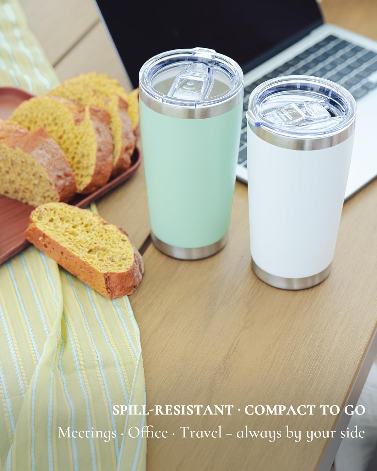 Travel Coffee Tumbler 20oz, 4 Pack Leakproof Travel Coffee Mug with Lid and Straw, Stainless Steel Double Wall Vacuum Insulated Tumbler for Hot/Iced Drinks (Textured Matte, White)