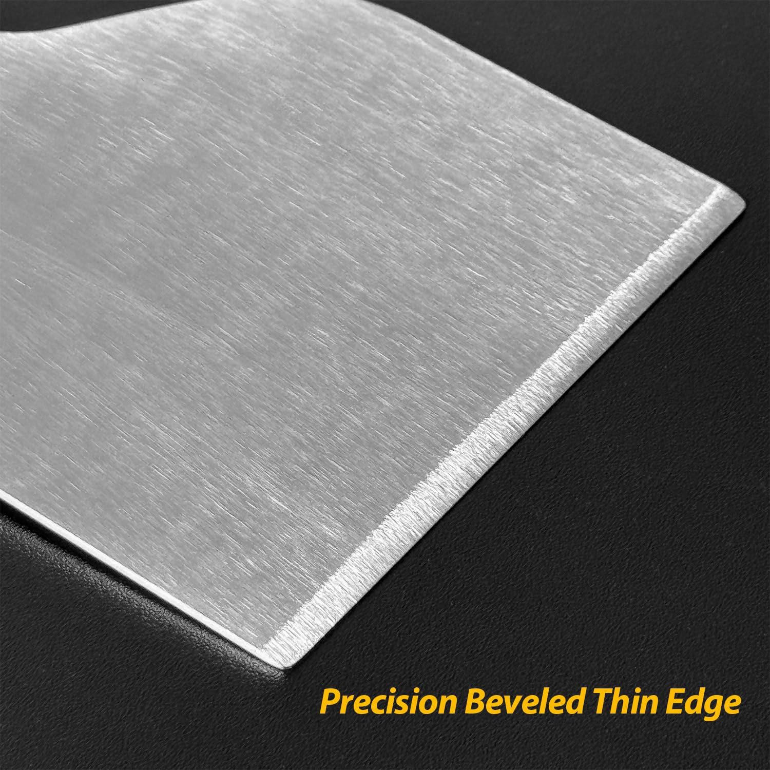 - Knife Grade Thickened Stainless Steel: With beveled front edge, this flipper is stronger and sharper to flip faster with more flavourful browned bits, sturdy enough to lift and press heavy items without bent or flex