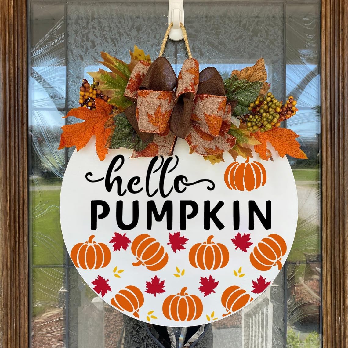 Fall Stencils for Painting on Wood Pumpkin Stencil Fall Leaves Maple Half Round Hello Fall Stencils for Door Mats Porch Hanger Decor