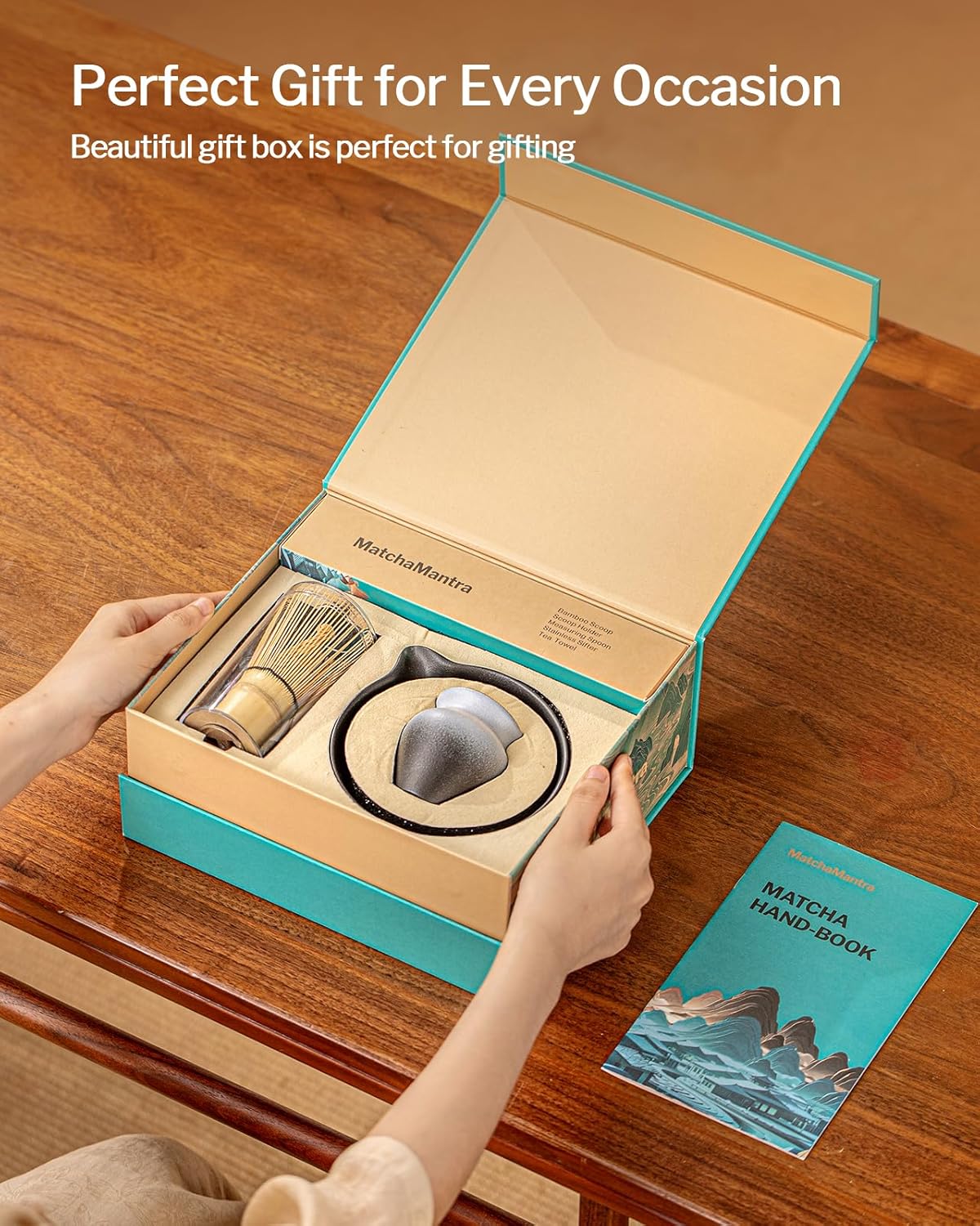 - [Premium Matcha Experience] Our MatchaMantra Artisan Matcha Whisk Set is a matcha set whisk and bowl that provides a premium matcha experience. Each piece of this matcha kit is carefully crafted, with the bamboo whisk, or chasen, meticulously hand - made to ensure perfect whisking for your matcha latte.
