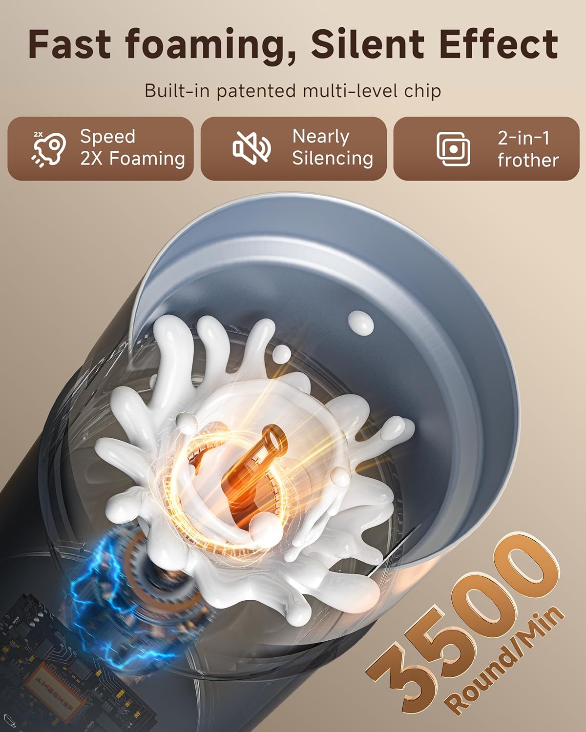 - Fast Frothing in 80 Seconds – No More Morning Delays Start your day without waiting. Our coffee frother prepares silky milk foam in just 80 seconds and heats milk up to 220 seconds. Ideal for those rushed mornings or quick midday pick-me-ups. A must-have electric milk frother for on-the-go lifestyles.