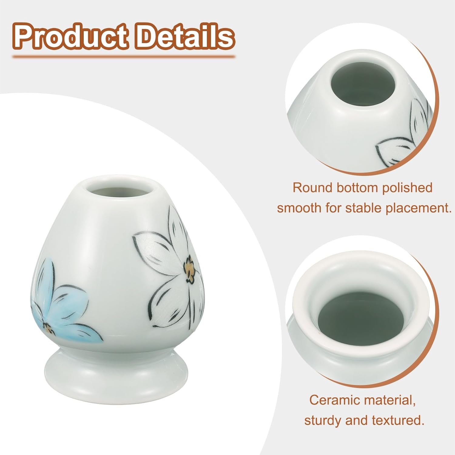 HARFINGTON Ceramic Chasen Stand 70mm Matcha Whisk Holder Tea Set Whisks Stand Traditional Matcha Tea Chasen Holder Tea Set Accessories for Tea Tasting, White Pattern