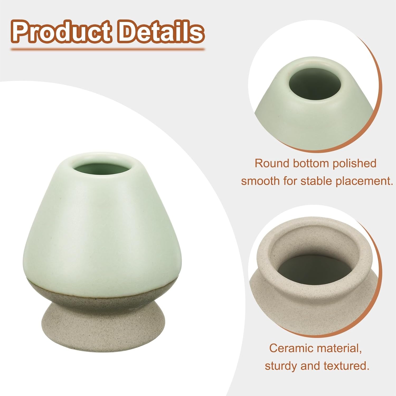 HARFINGTON Ceramic Chasen Stand 70mm Matcha Whisk Holder Teas Set Whisks Stand Traditional Matcha Tea Chasen Holder Tea Set Accessories for Tea Tasting, Beige/Light Green
