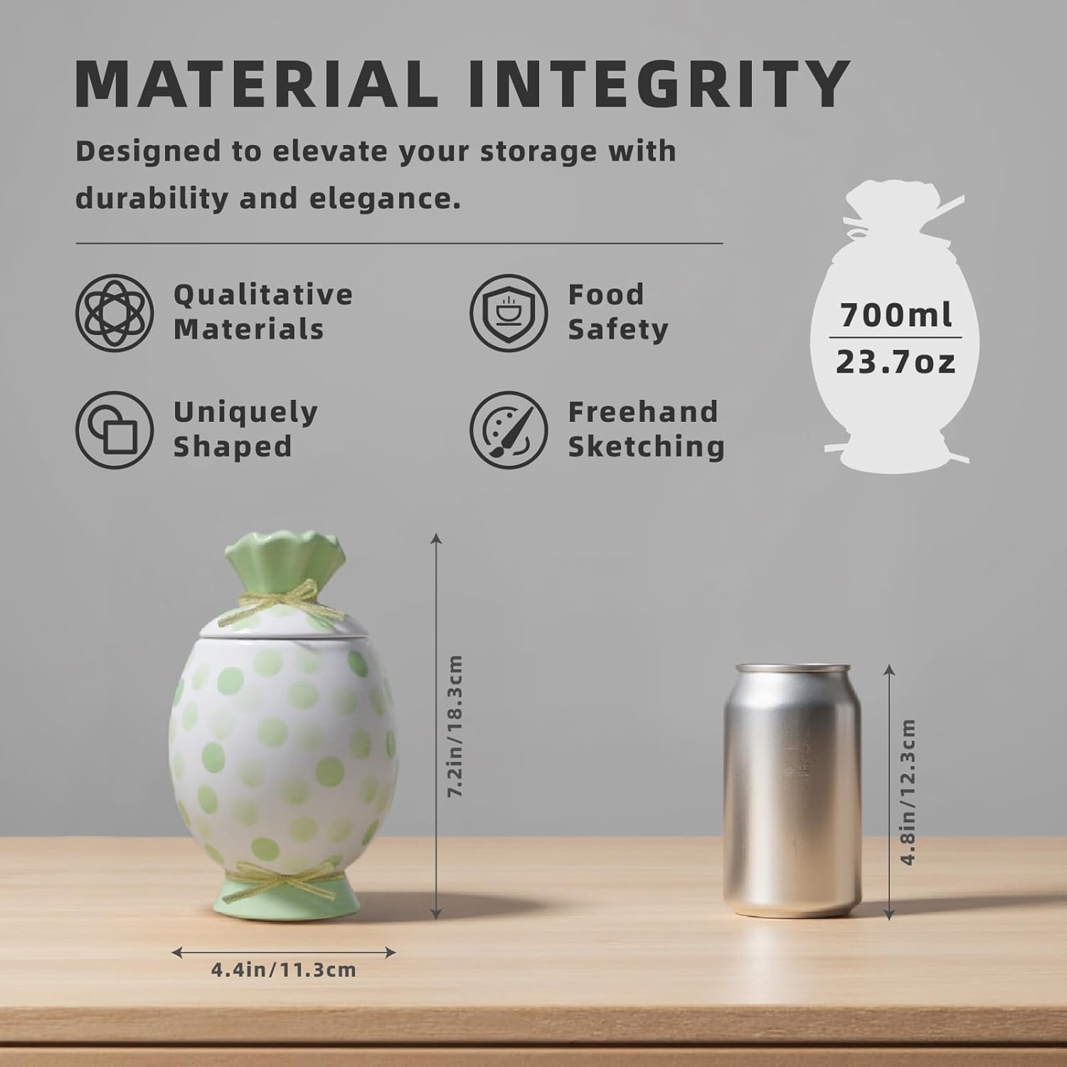 - 【Multifunctional Containers】----- This kitchen storage jars is 700 ml / 23.7 oz, to meet your various storage needs. Use the ceramic food storage containers for cookie, coffee beans, tea, spices, flour, sugar, brown sugar, dried grains, cereal, or dog treat. These jars can also serve a spen holder, small vases, and more.