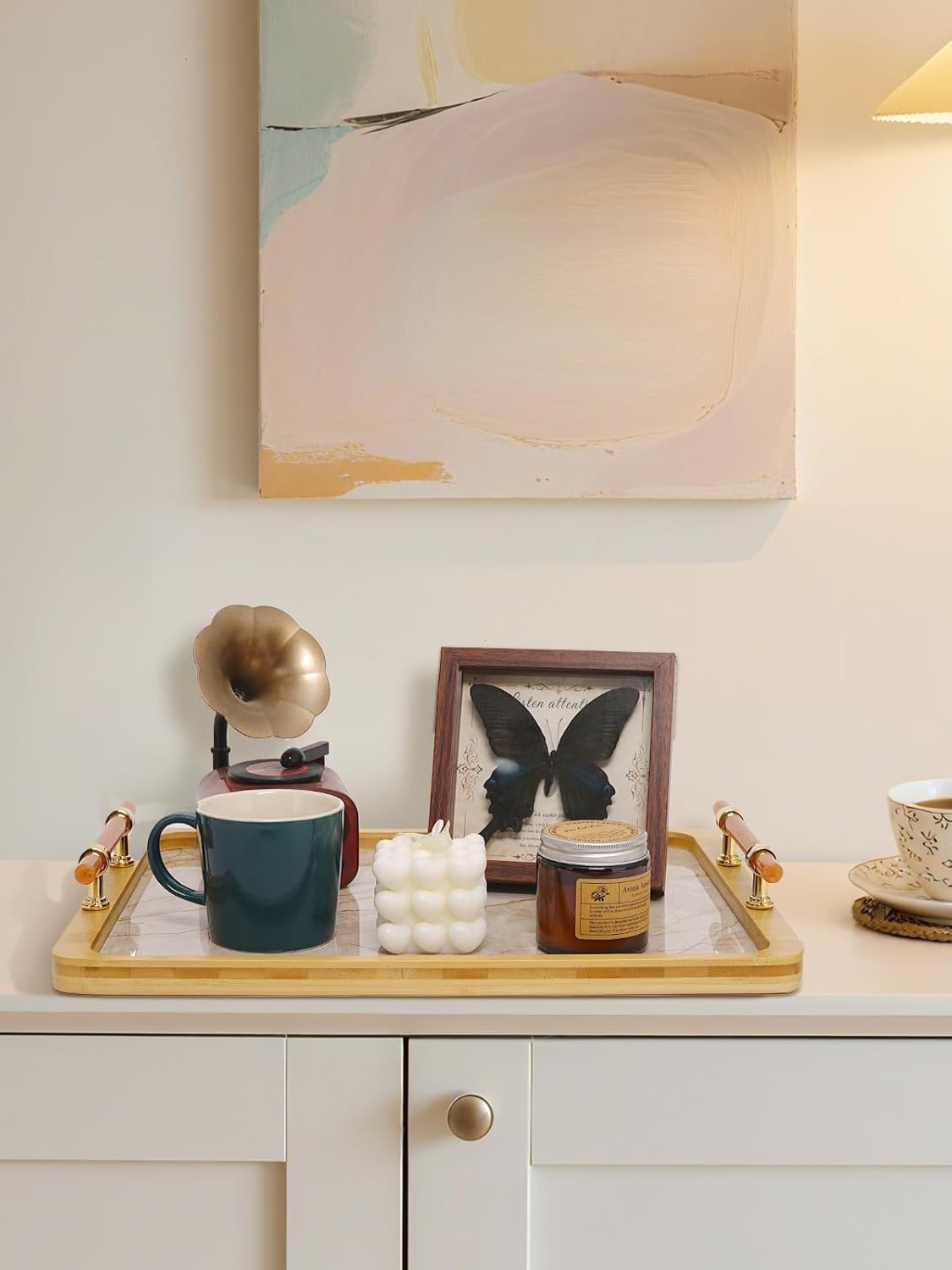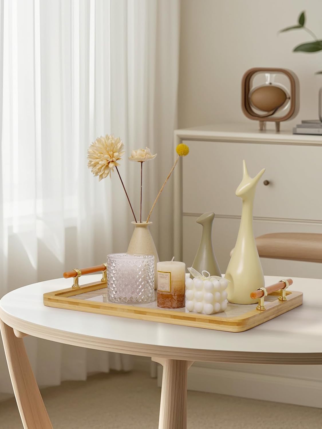 - Natural Bamboo Tray: Made from natural bamboo, this tray is sturdy yet lightweight, bringing a warm, organic feel to any room