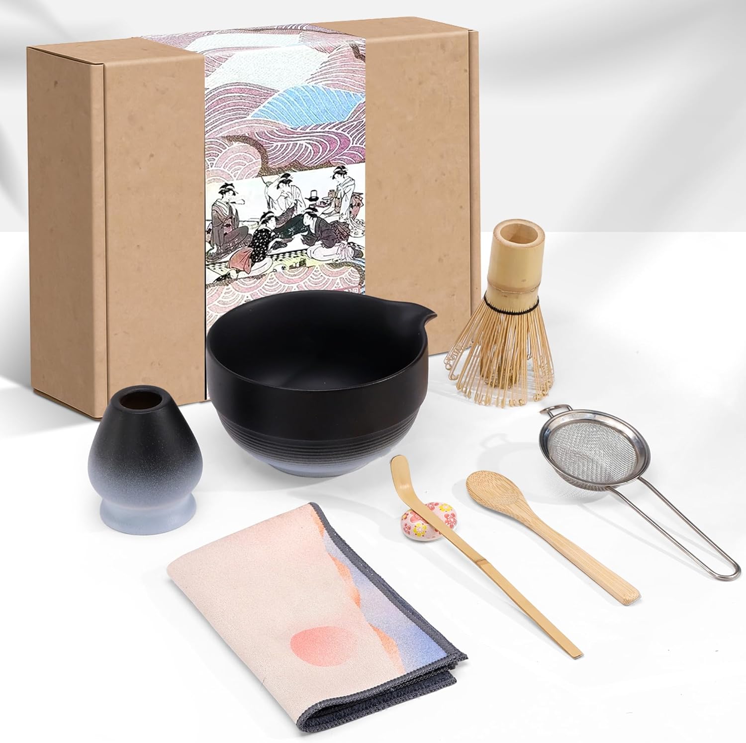 - 【All-in-One Matcha Ceremony Kit】 Our premium 8-piece matcha kit is designed to meet every need, includs 1 matcha bowl,1matcha whisk set,1 matcha whisk holder,1matcha sifter, 2 matcha spoon,1matcha spoon holder,1Tea cloth from preparation to clean-up, all while showcasing elegant packaging that enhances the ceremonial feel. Whether gifting a loved one or treating yourself, this meticulously crafted set guarantees to impress with its high quality and graceful design. Complete with every tool you need.