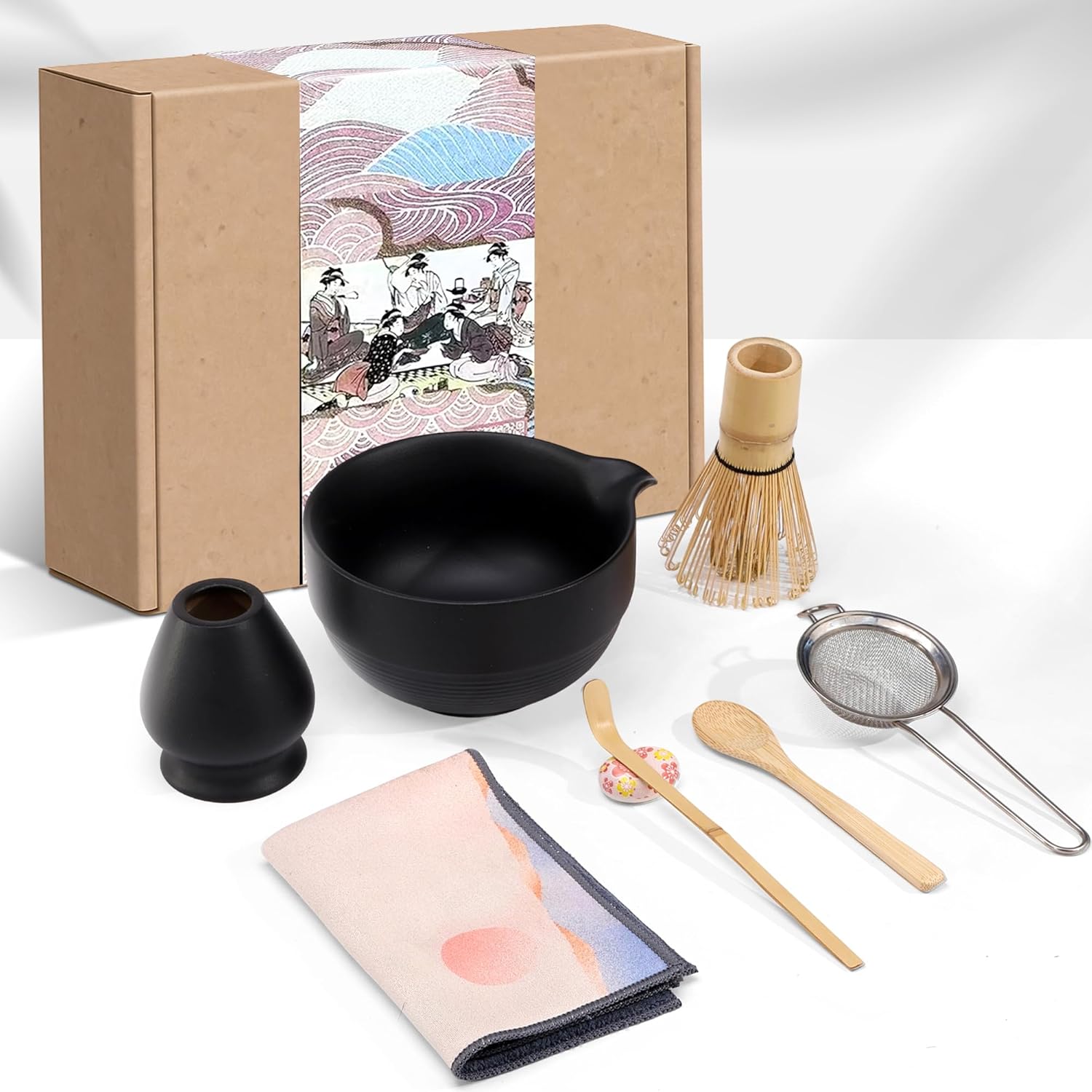 - 【All-in-One Matcha Ceremony Kit】 Our premium 8-piece matcha kit is designed to meet every need, includs 1 matcha bowl,1matcha whisk set,1 matcha whisk holder,1matcha sifter, 2 matcha spoon,1matcha spoon holder,1Tea cloth from preparation to clean-up, all while showcasing elegant packaging that enhances the ceremonial feel. Whether gifting a loved one or treating yourself, this meticulously crafted set guarantees to impress with its high quality and graceful design. Complete with every tool you need.
