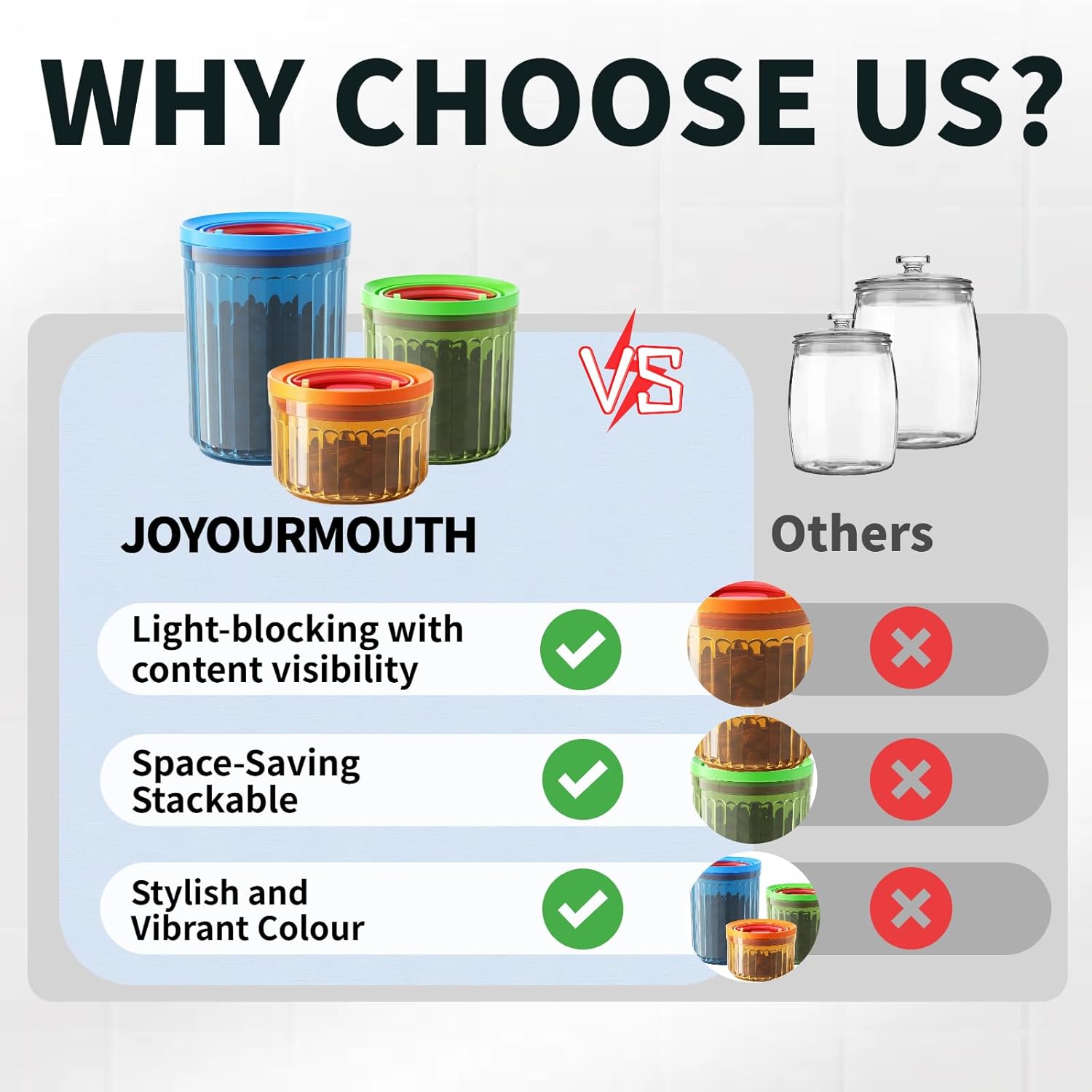 - 2. Stylish and Vibrant Color ,Light-Blocking Design:Available in Vibrant,Bright and cheerful color,airtight coffee storage container make it easy to categorize coffee types,sugar,beans,snacks,while adding a pop of color to your space.Dark-tinted yet transparent canisters block UV rays while allowing content visibility,allowing easy content checks without compromising freshness
