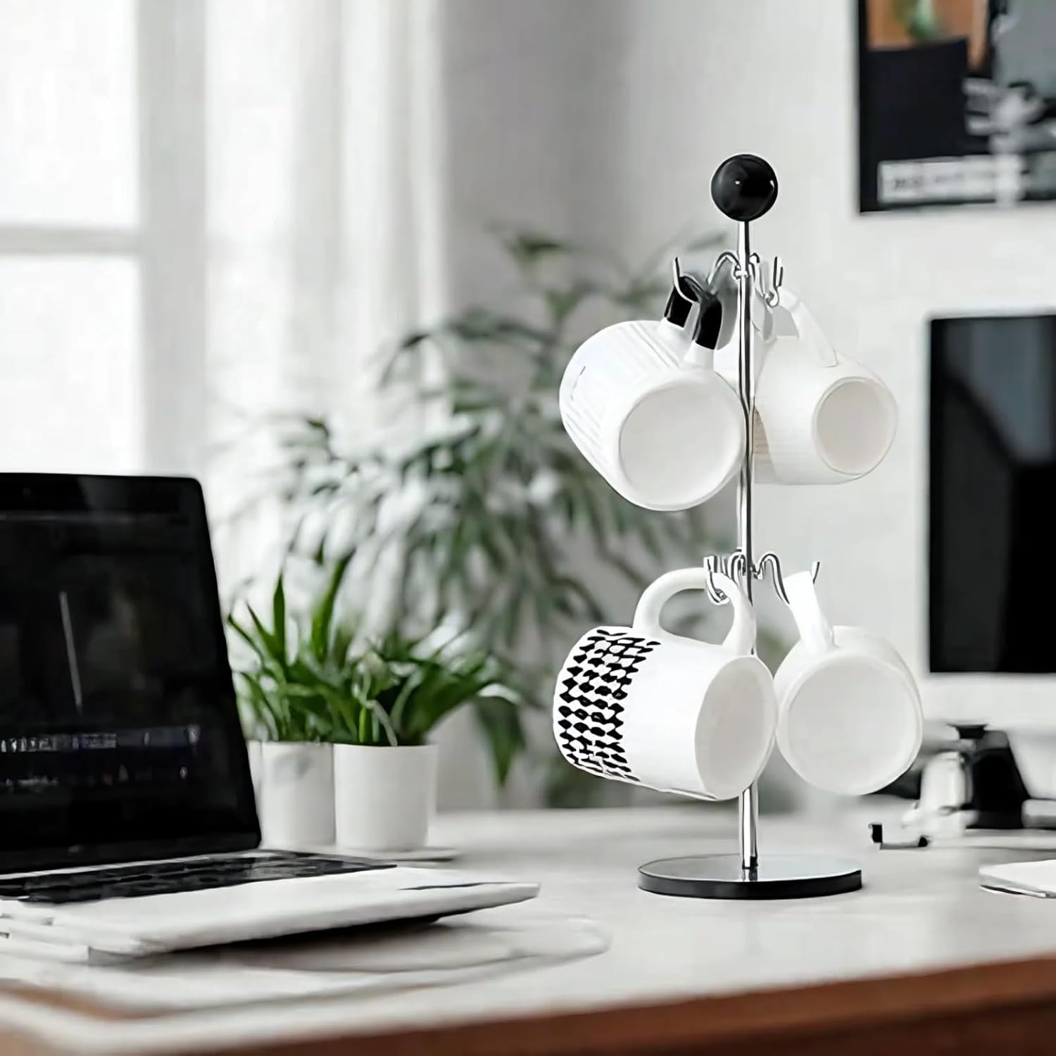- Durable Electroplated Construction:Crafted with electroplated iron hooks and a central pole for rust resistance,this coffee mug organizer features a sealed wood ball and surfaces that resist stains,scratches, and wipe clean instantly