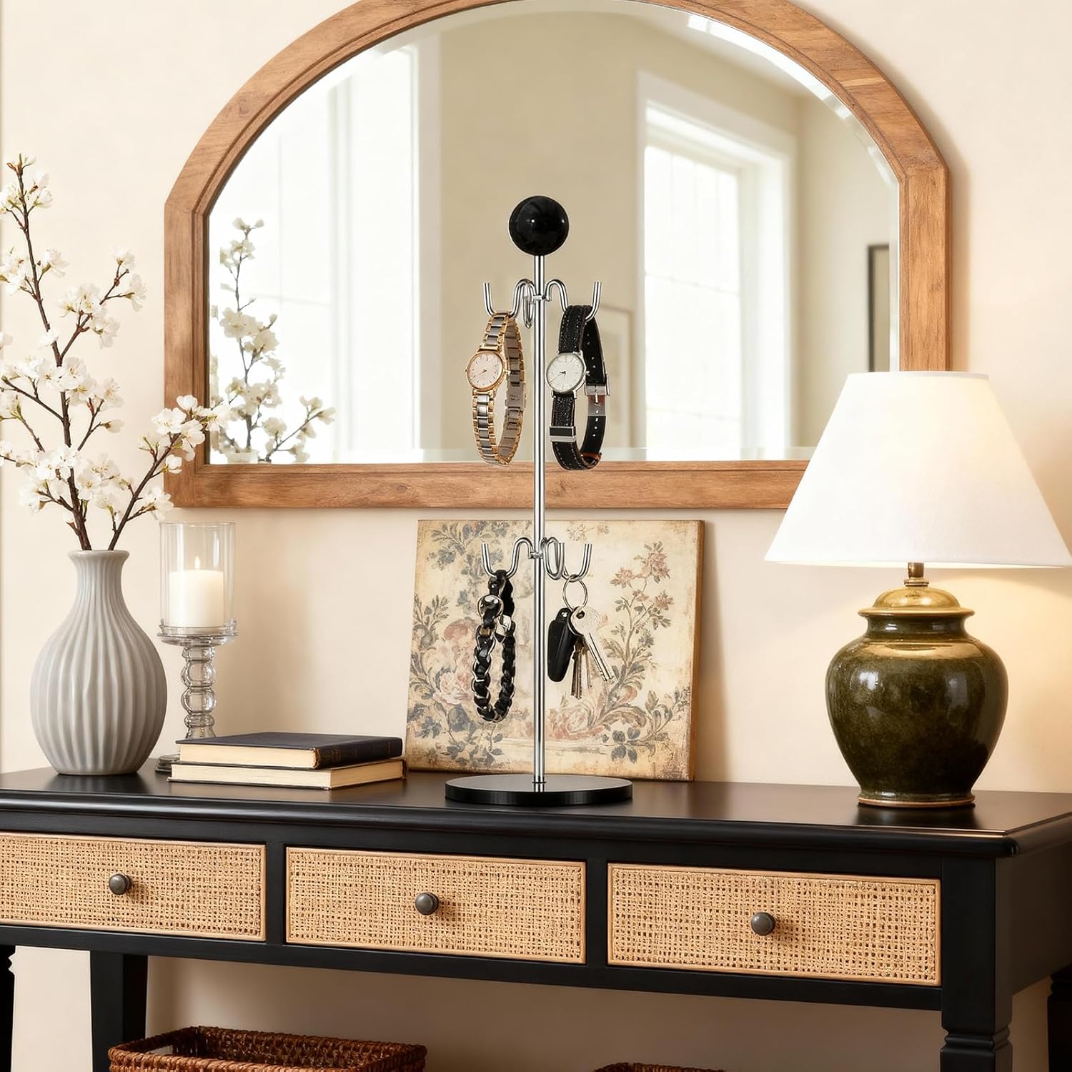 - Mid-Century Modern Design:Featuring a sleek arched handle topped with a lacquered wood ball,this coffee cup tree blends vintage charm with modern minimalism,elevating your coffee bar decor and turning practical storage into a stylish focal point