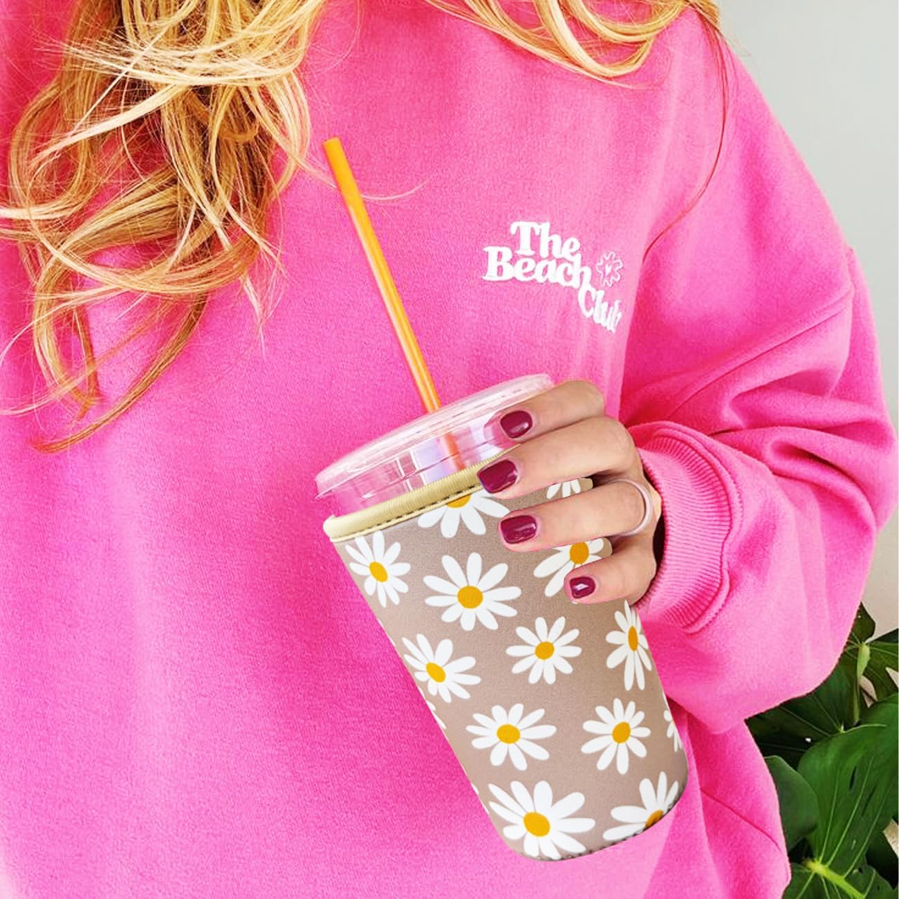 Reusable Insulated Neoprene Iced Coffee Cup Sleeve, Durable Drink Sleeve for Cold Beverages, Beverage Holder for iced coffee, Sunny Daisies