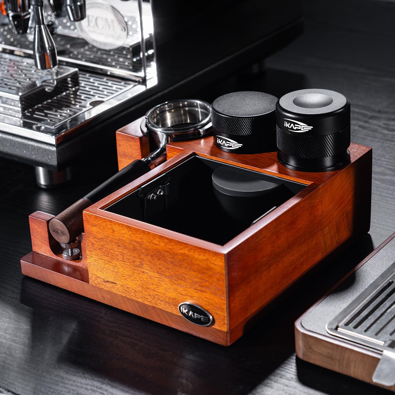 IKAPE 58MM Espresso Tamper, New Wooden Handle Design,Premium Barista Coffee Calibrated Tamper with Spring Loaded, 100% Stainless Steel Tamper Compatible with All 58MM Bottomless Portafilter