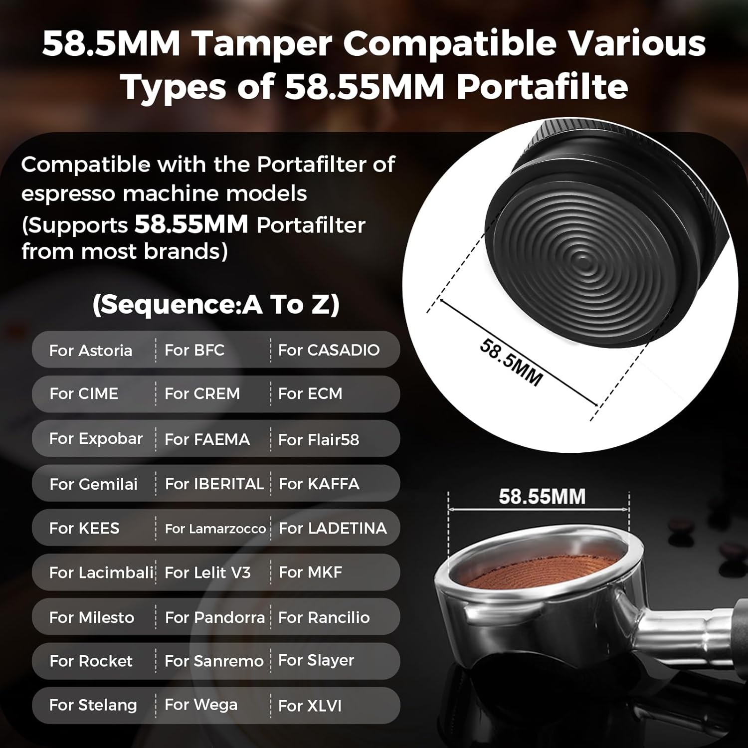 - Premium Tamper Tool for Professional Baristas: Be made of 100% food-safe grade stainless steel. Compared to other cheaper tampers, this super premium tamper allows you to get a better espresso in your espresso making. This quality tamper is durable, and its rust-proof design ensures your diet is healthy. For a 58.5mm bottomless portafilter, you need to choose a 58 mm calibrated tamper