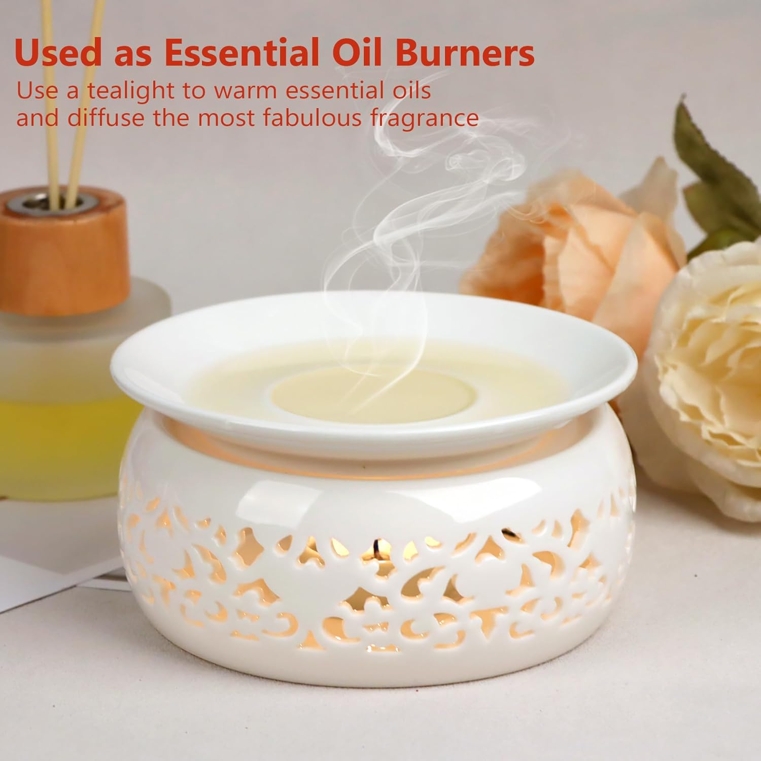 - [ Elegant Design] The tea warmer is made of high-quality exquisite white porcelain, durable and strong load-bearing capacity. Beautiful craftsmanship, hollow carving, candles give off a soft glow, creating a relaxing and romantic atmosphere.