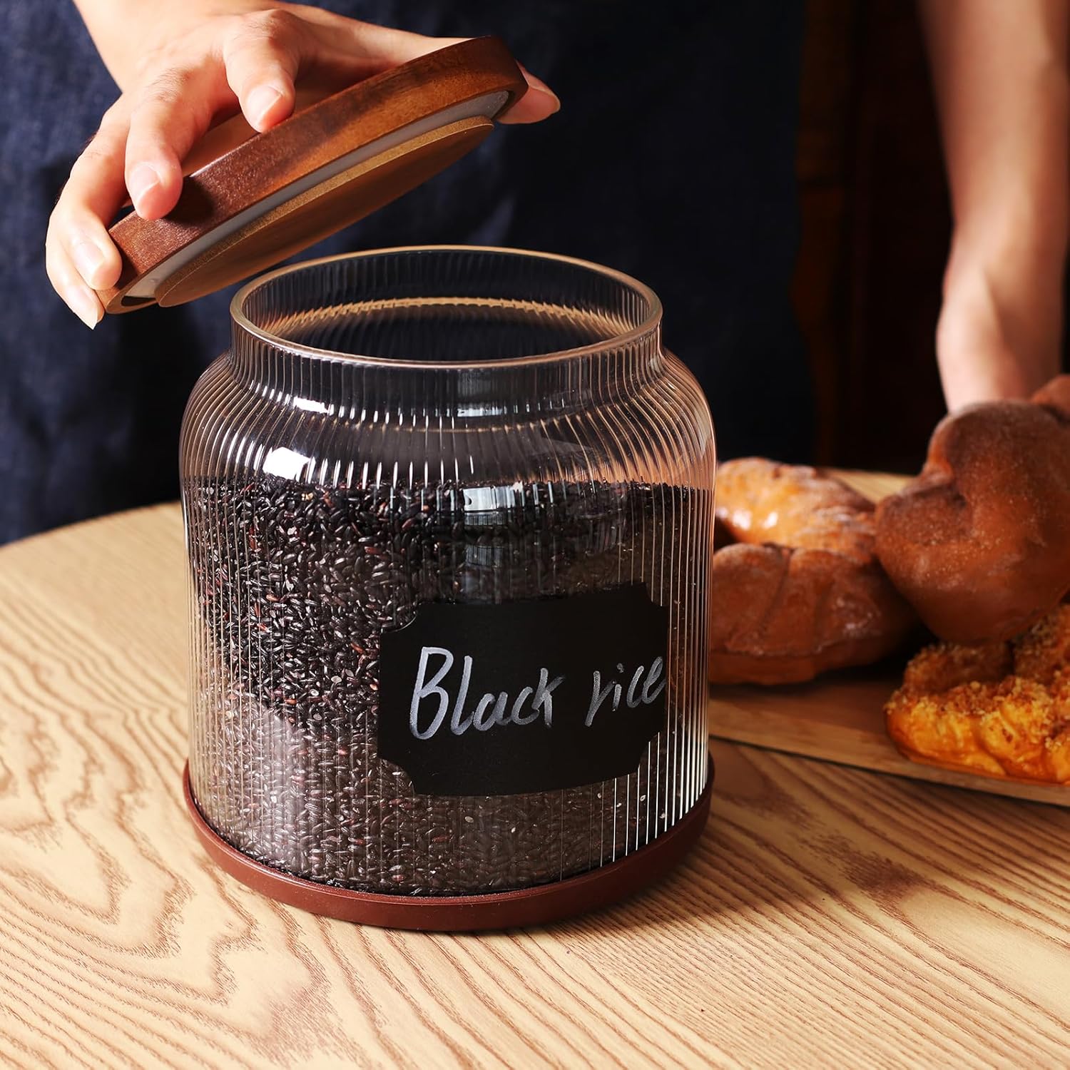 - Vintage Design with Modern Utility: The (Acacia wood) lid and transparent glass combine to offer a retro look while providing clear visibility of contents.