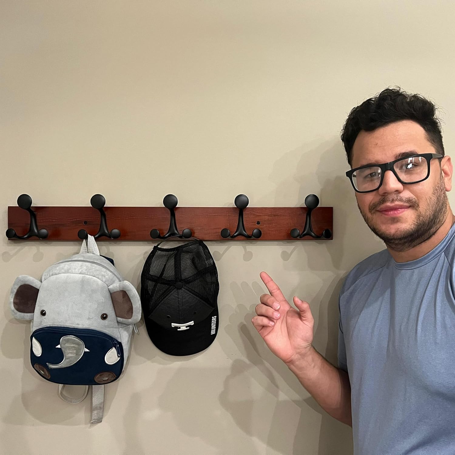 SKOLOO 30-Inch Cherry Wood Coat Rack Wall Mount with 5 Triple Hooks - Ideal for Family Entrances, Classrooms, and Pet Supplies Storage - Perfect Coat Hooks for Wall