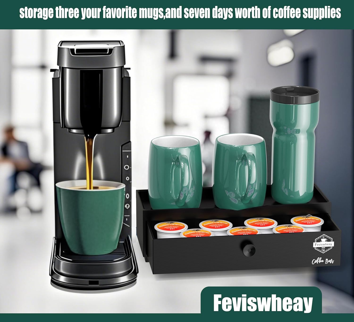- Pull-Out storage Pods Drawer & Snack Storage: Keep your Coffee pods, tea bags, sugar packets, and stir sticks neatly organized and out of sight. The smooth-gliding drawer is suitable for coffee pod storage, allowing you to pre-load a week's worth of supplies for a streamlined morning routine. great for coffee station organization