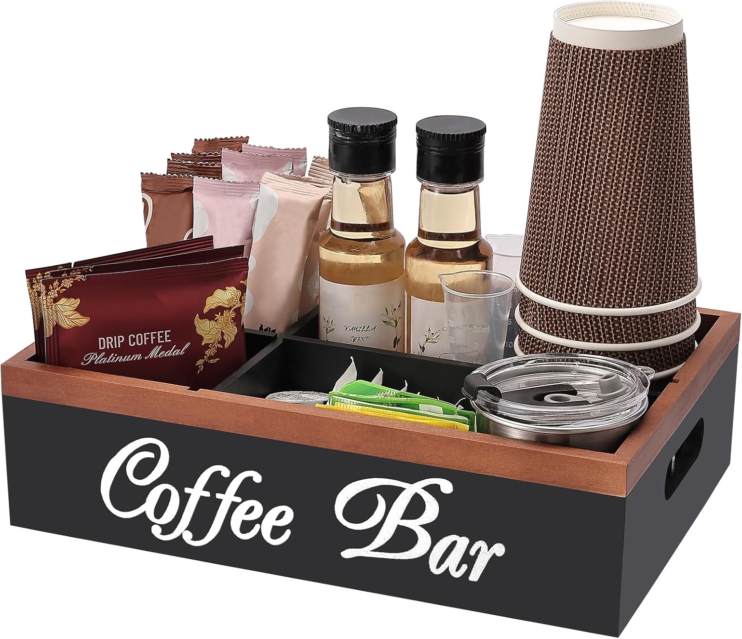 - 【Versatile Coffee Bar Decoration】This cute yet functional coffee station organizer is perfect not only for your home countertop or kitchen, but also ideal for coffee shops, hotel lobbies, office break rooms, restaurants, meeting spaces, and more. Featuring a vintage handwriting style—“Goffee Bar”—etched on the front, it adds a delicate touch to any space. Decorate your coffee station with this unique coffee accessory.