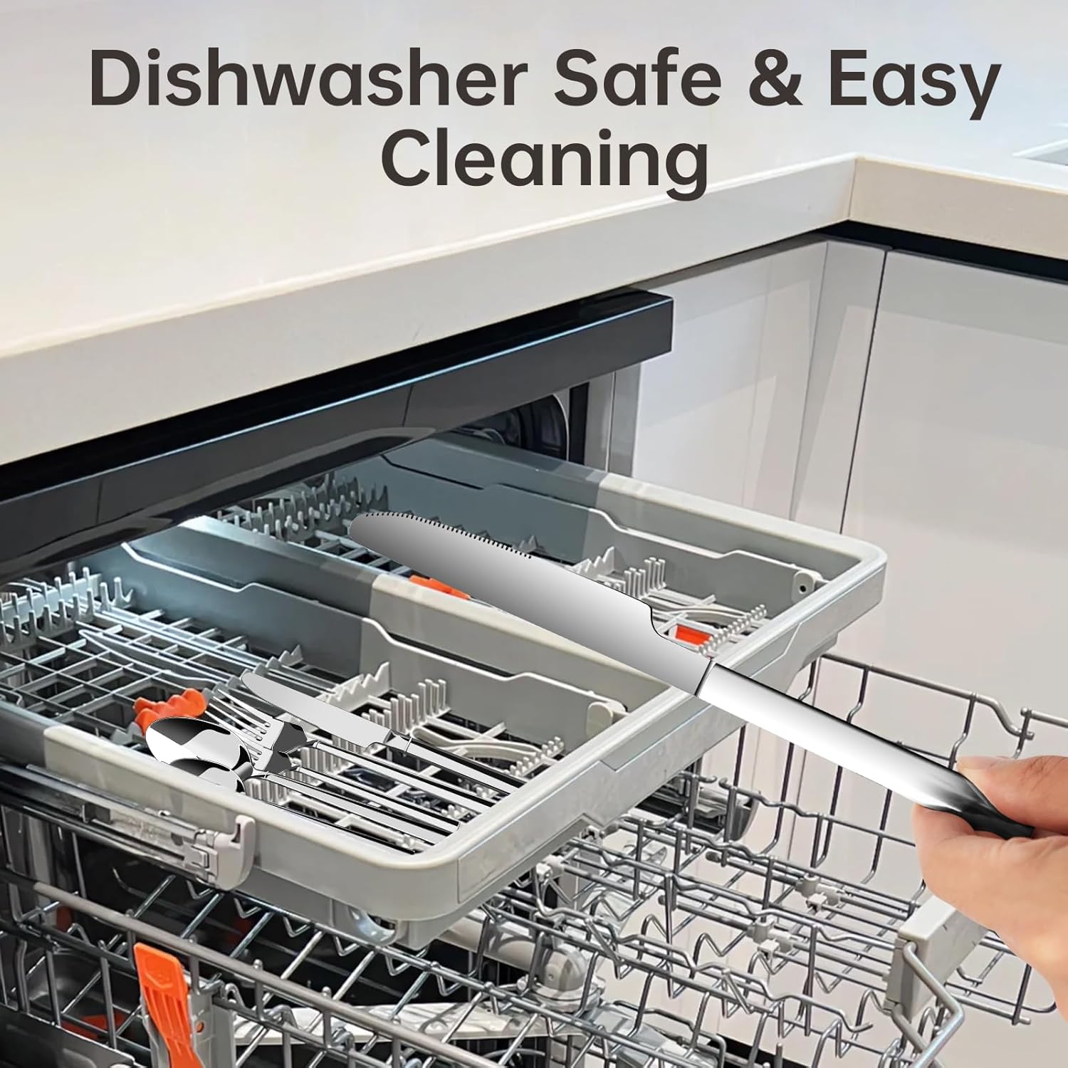 - Mirror-Finish Stainless Steel – Polished cutlery with a clean, modern look; smooth edges feel comfortable on lips and hands. Rust-resistant steel helps the set keep its bright shine.